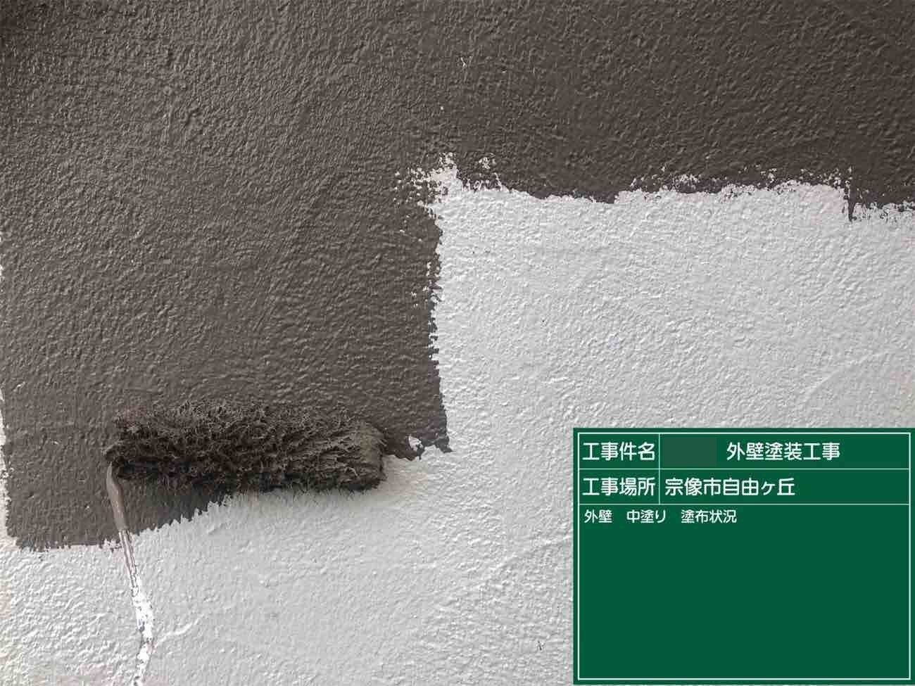 こちらは二回目。建材の劣化が激しい場合は二回塗装を行うこともあります。