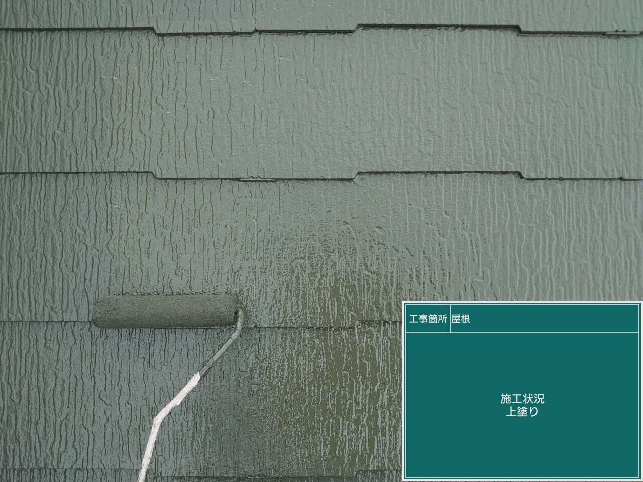 最後に上塗り作業、紫外線の刺激が多い屋根は特に塗装が必要になりますので確り3回塗装を行い基材を守ります。
