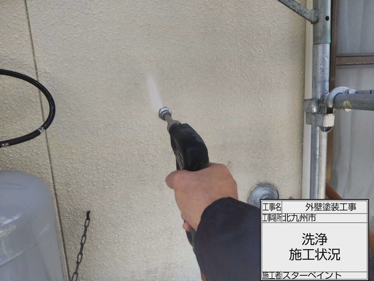 外壁の洗浄作業を行っていきます。外壁の洗浄を行い、きれいにしたあと確り乾燥させていきます。