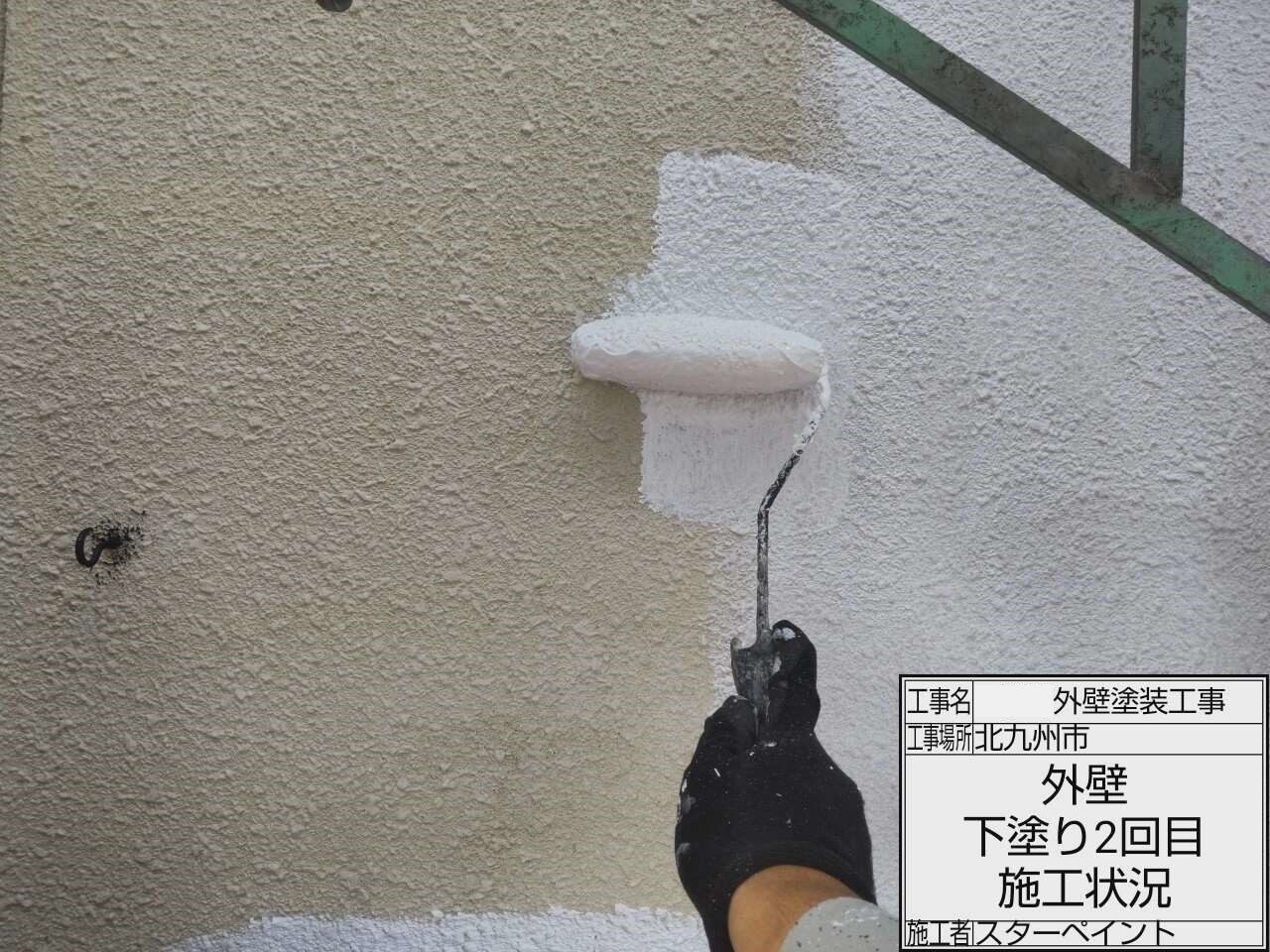 次に2回目の下塗り作業です。2回塗装を行うことで、上塗りに使用する塗料が密着しやすくなります。