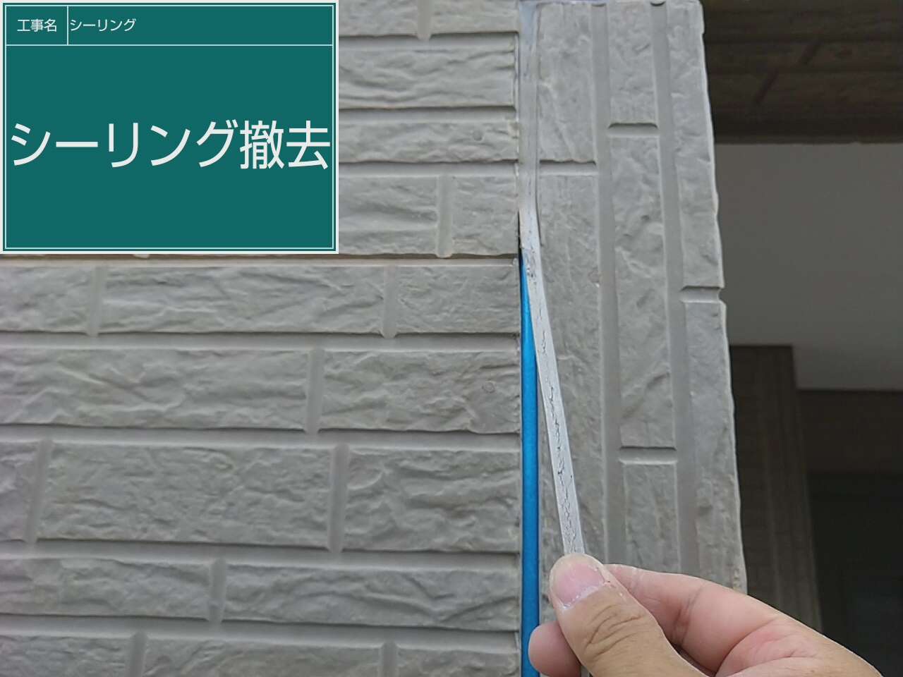 目地の既存のシーリングを撤去していきます。撤去はカッターなどを使用しています。