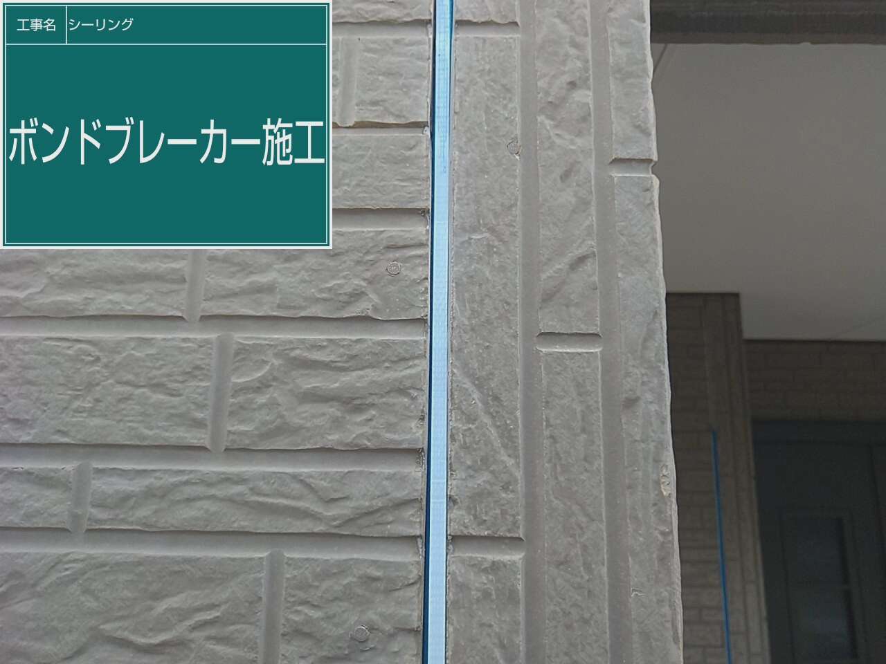 撤去が完了したら清掃を行い、目地の底にボンドブレーカーを接着していきます。ボンドブレーカーを接着することでシーリングが3面接着するのを防ぎます。
