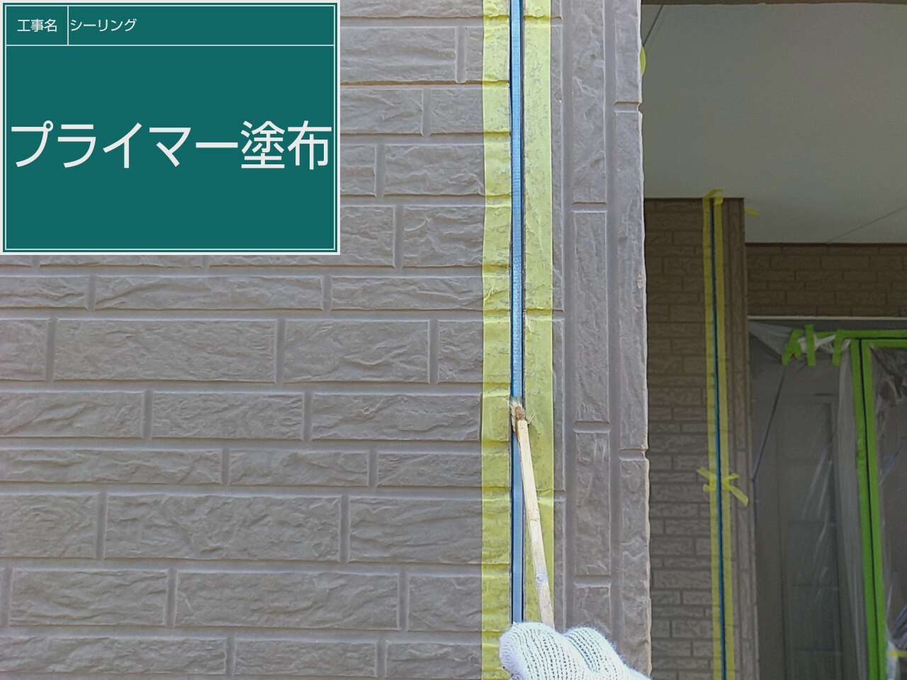 次に目地の側面にプライマーを塗布します。接着を高めます。
