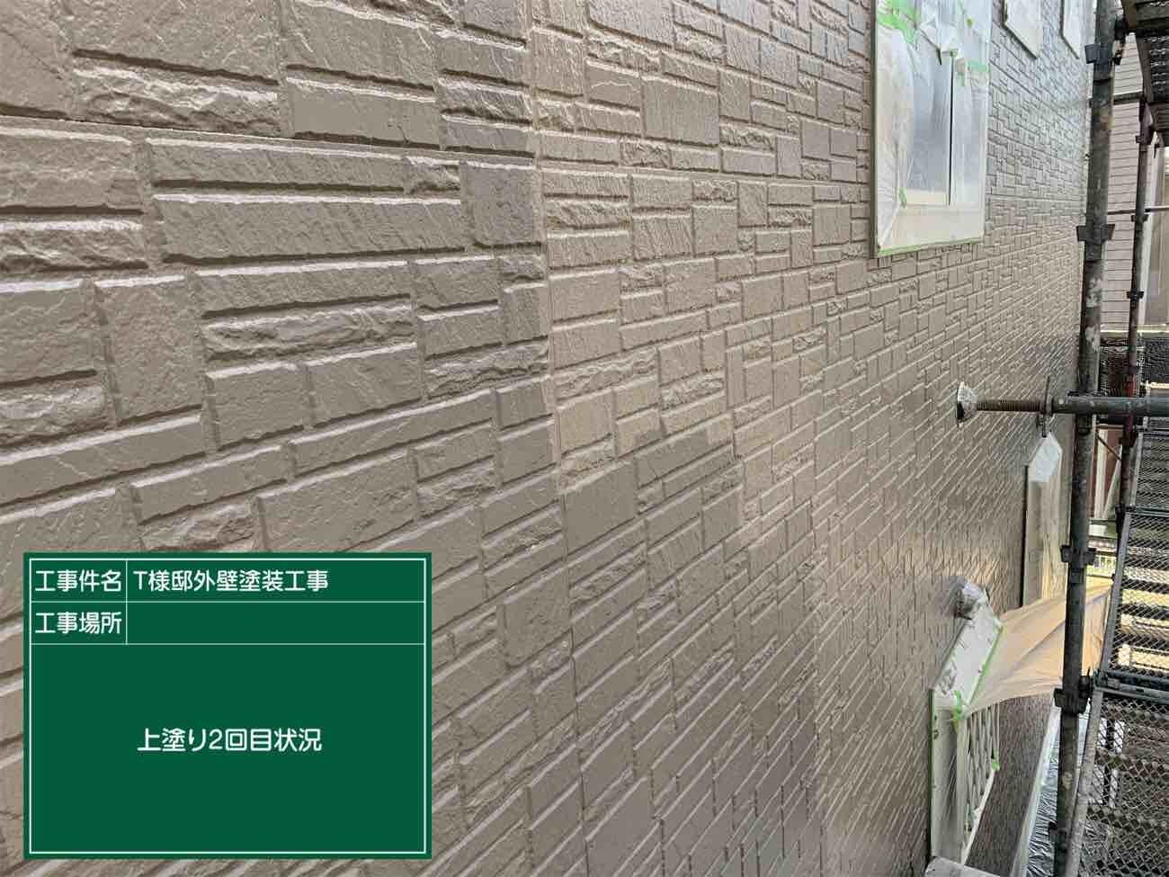 最後は上塗り塗装。上塗りで仕上げていきさらに厚みを出し紫外線などから外壁を守ります。ビフォーアフターはトップを見て頂けたらと思います!