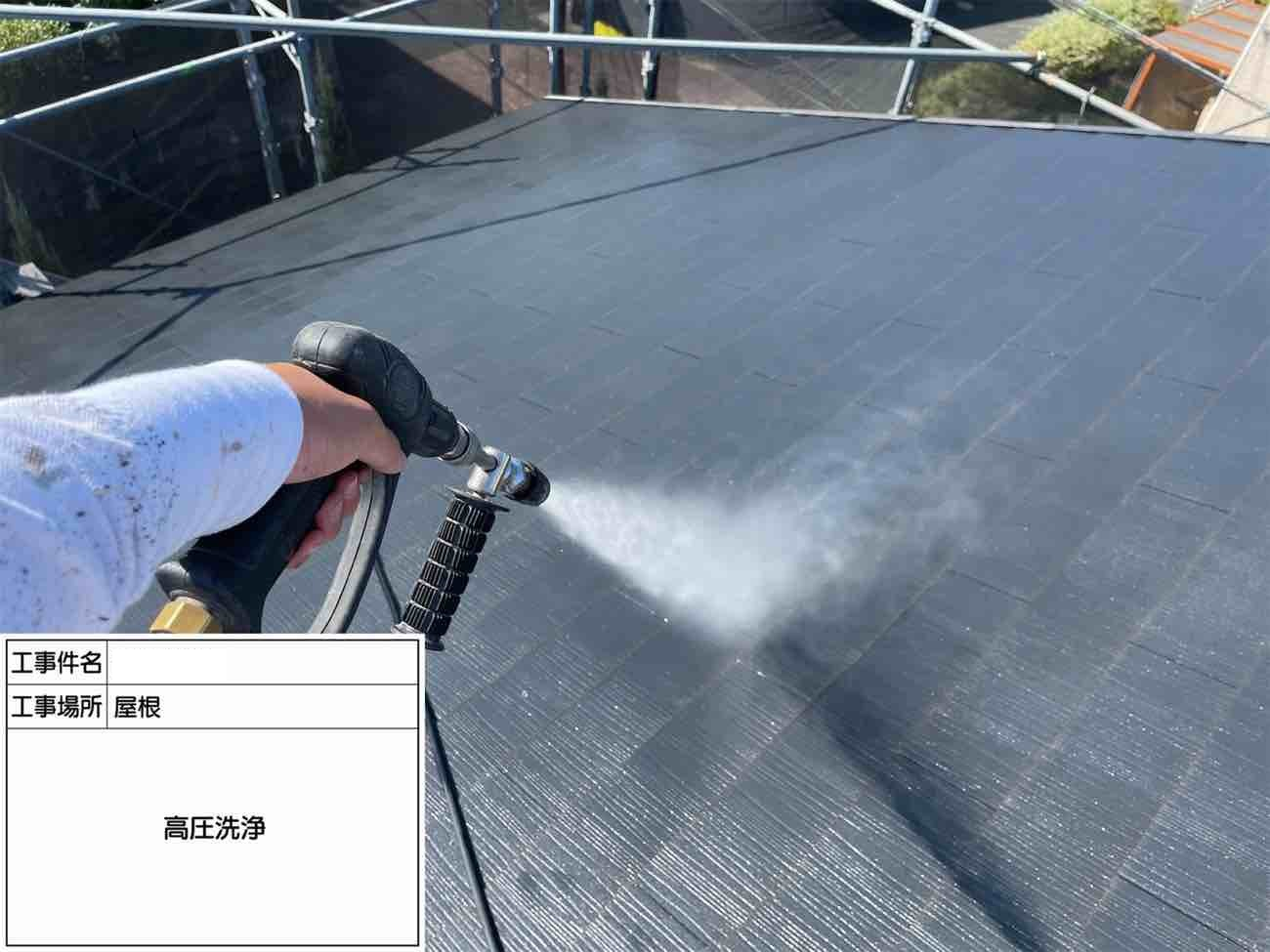 まずは高圧洗浄作業を行い、細かな汚れも綺麗に落としていきます。