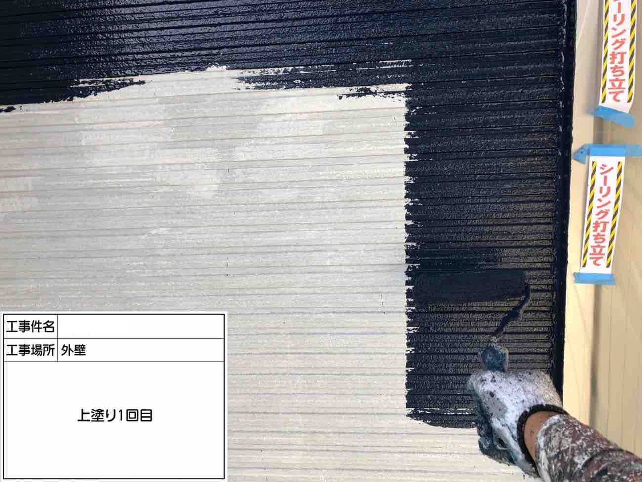 中塗り作業です。上塗り1回目とも呼ばれお客様がお決めになったお色味を塗布していきます。