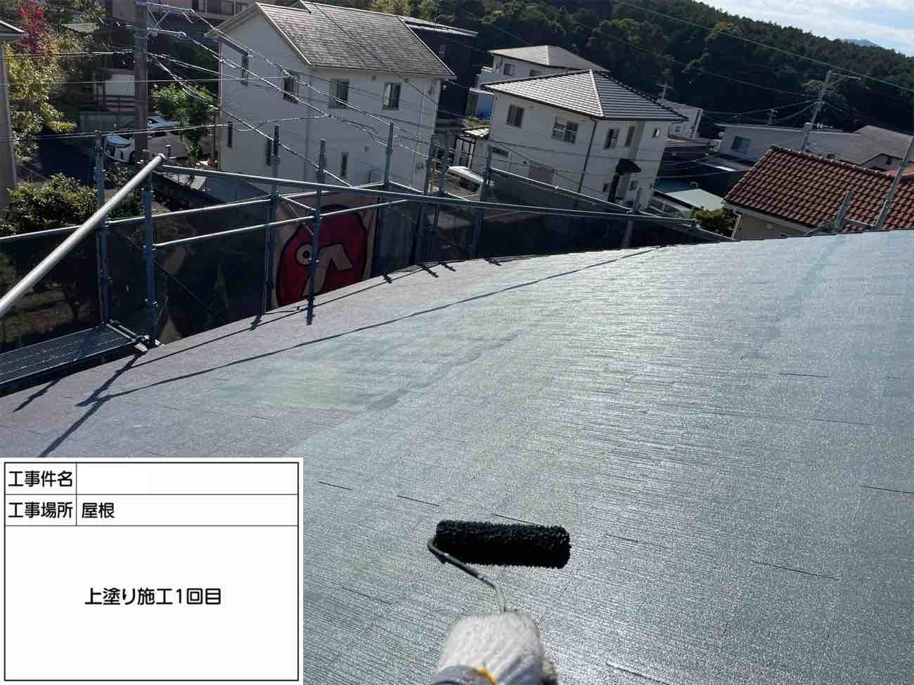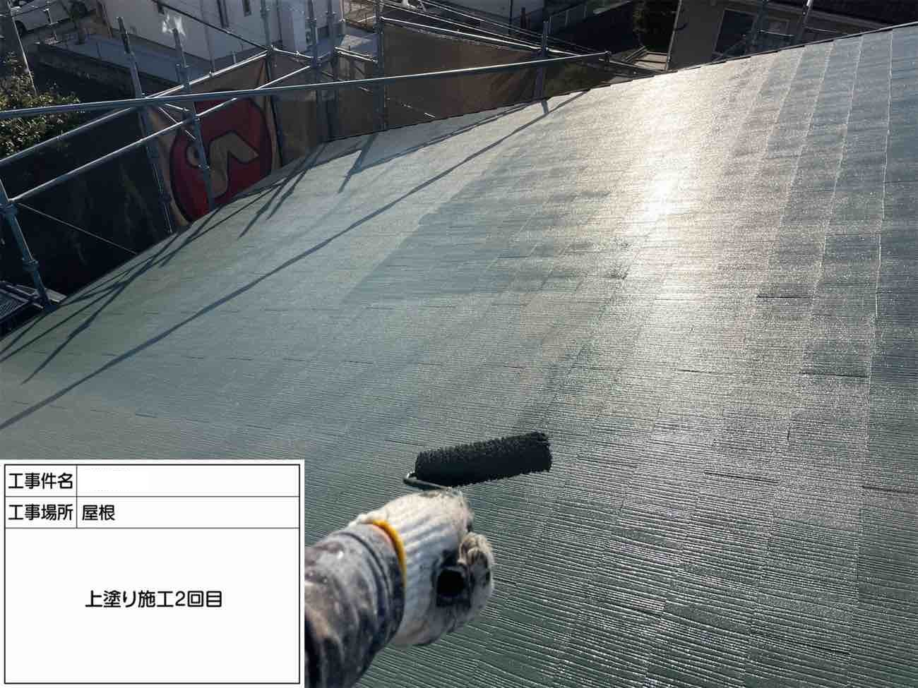 上塗りです。中塗りの時と同じ塗料を使用していきます。 美観にも関わる最後の工程です。