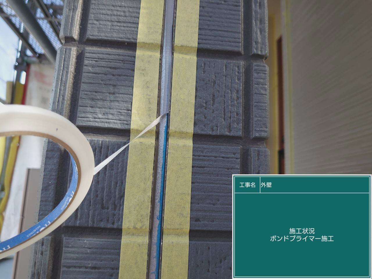 既存のシーリングを撤去した後、目地底にボンドブレーカーを接着していきます。