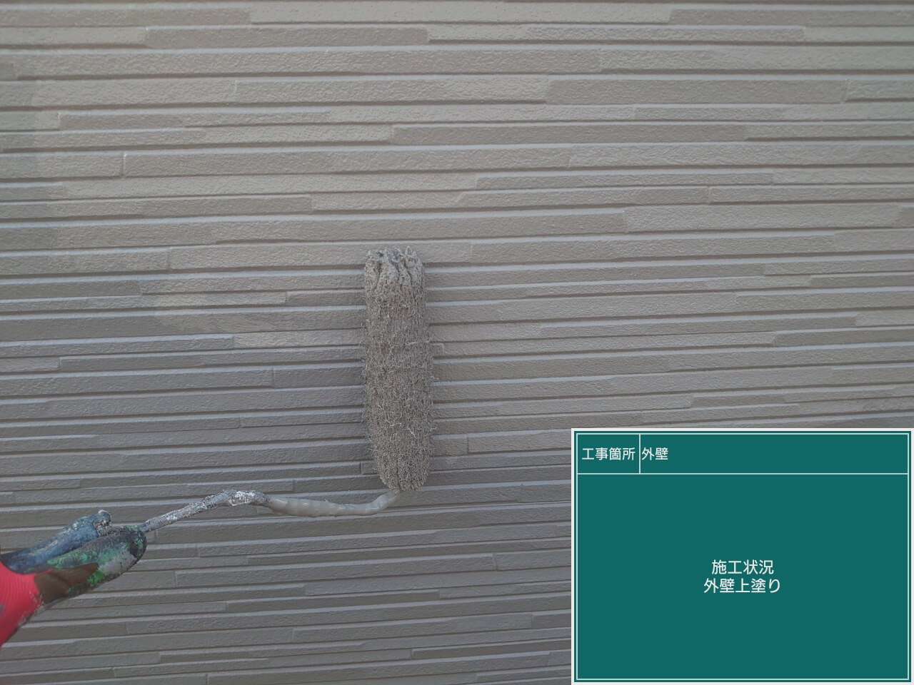 最後は上塗り塗装。上塗りで仕上げていきさらに厚みを出し紫外線などから外壁を守ります。ビフォーアフターはトップを見て頂けたらと思います!