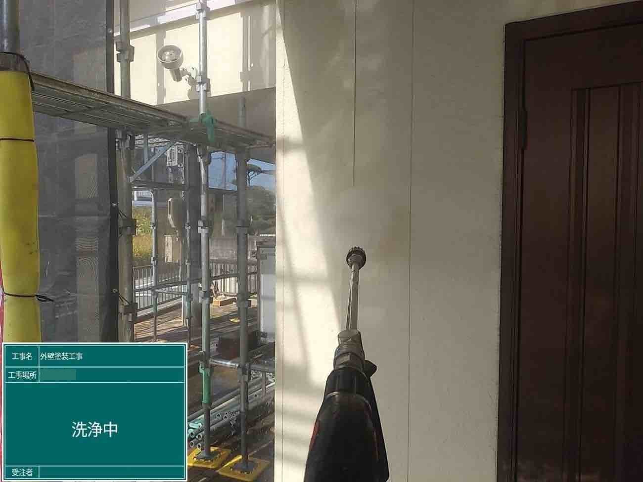 まずは外壁の高圧洗浄を行い細かな汚れまで落としていきます。