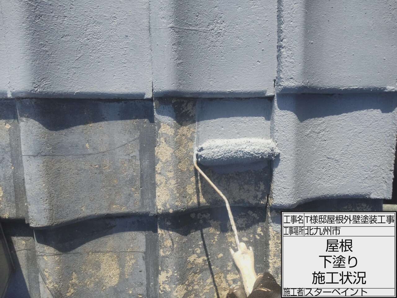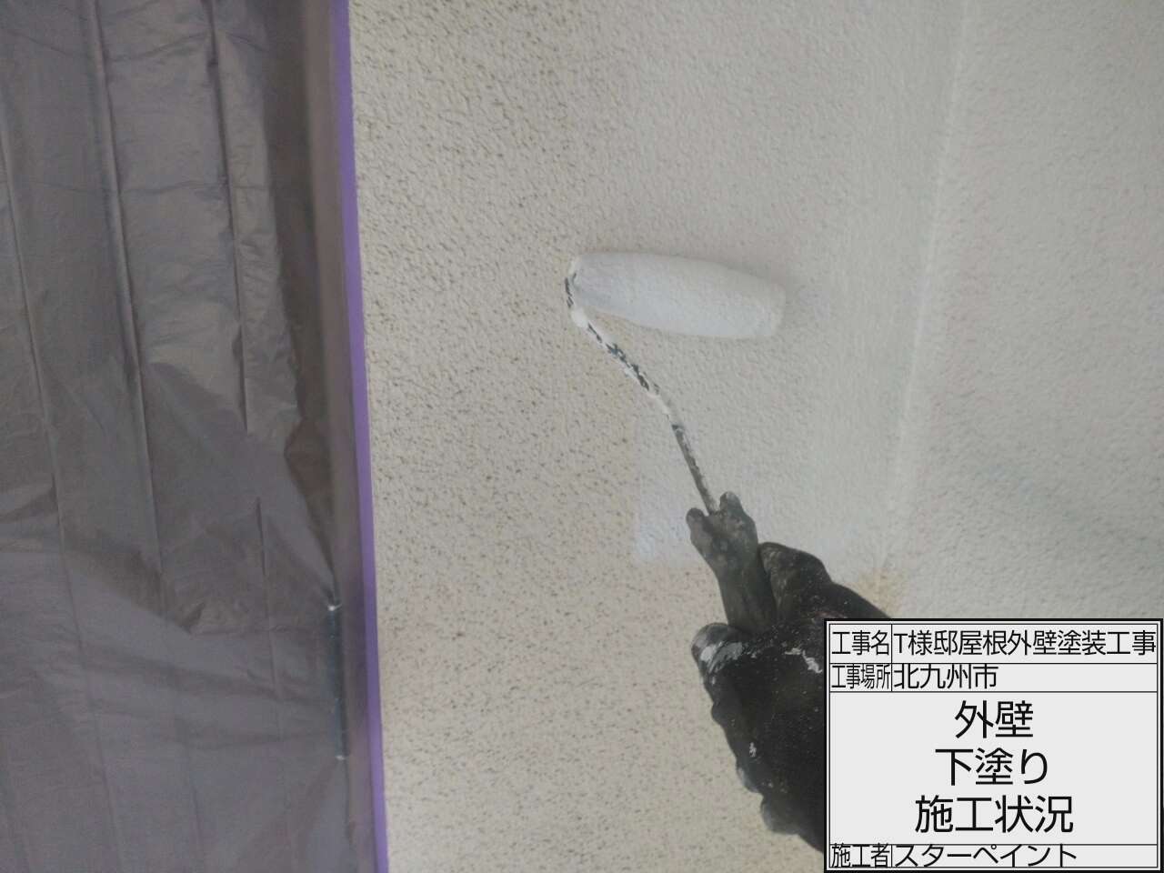 まずは全体に下塗り材を塗布していきます。 塗料の密着性を高めます。