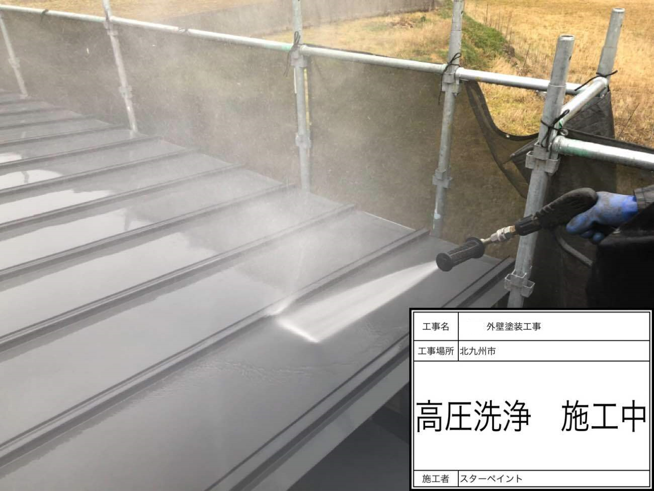 屋根洗浄を行います。高圧洗浄で汚れなどを落としていきます。
