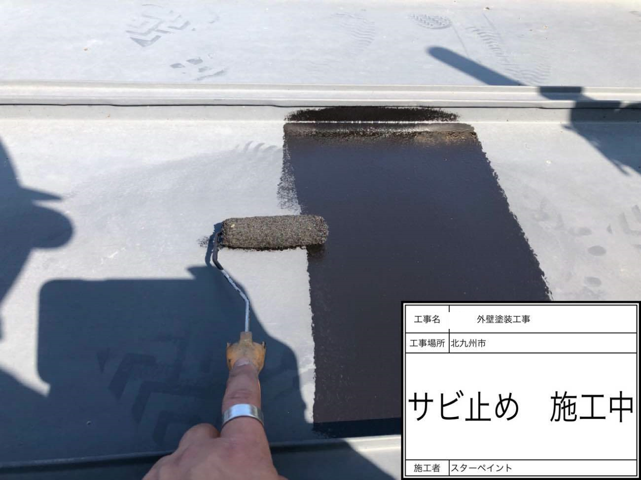 下地調整までで塗料が密着しやすい状態にした後に錆止めを塗布します。
