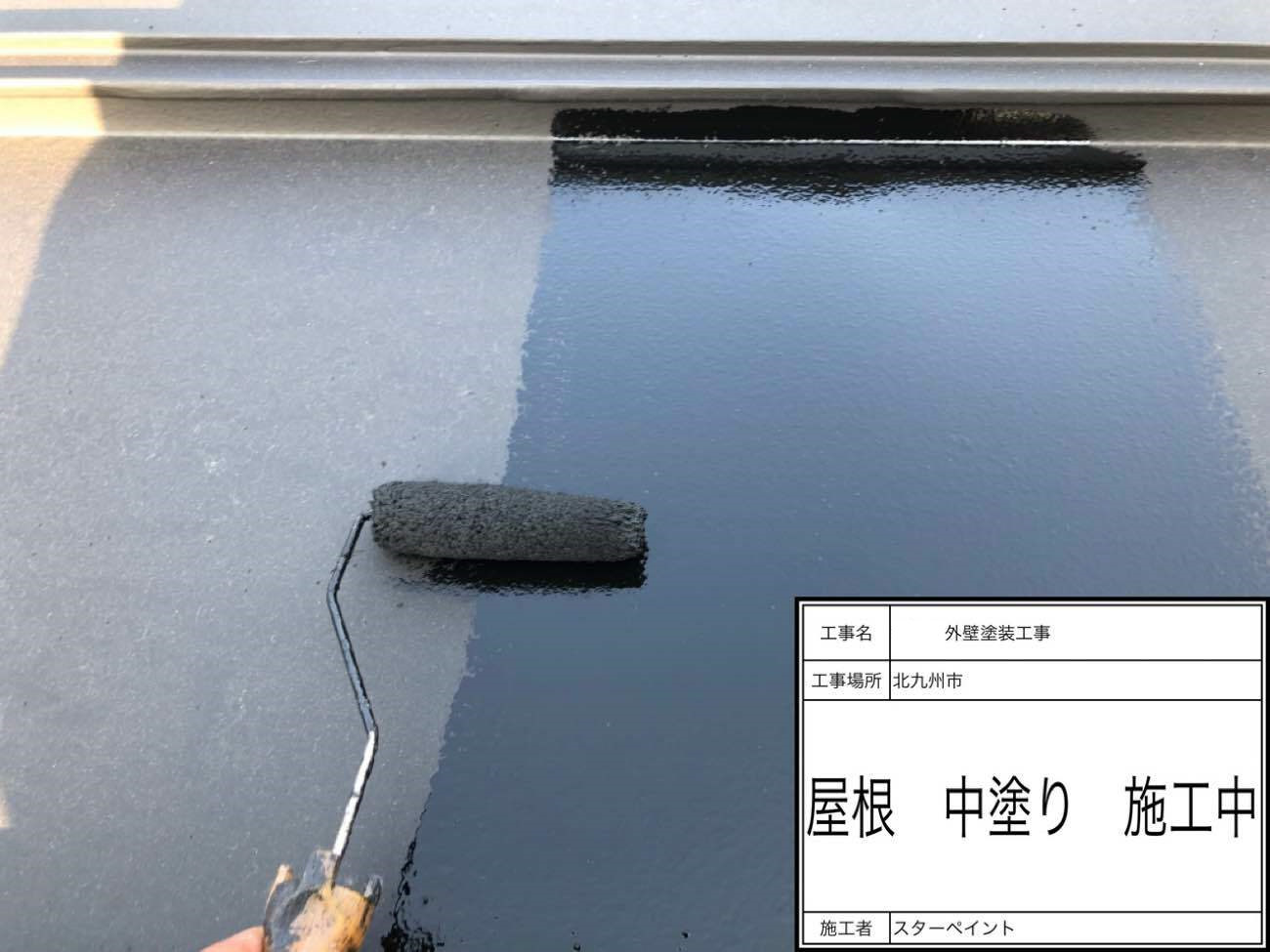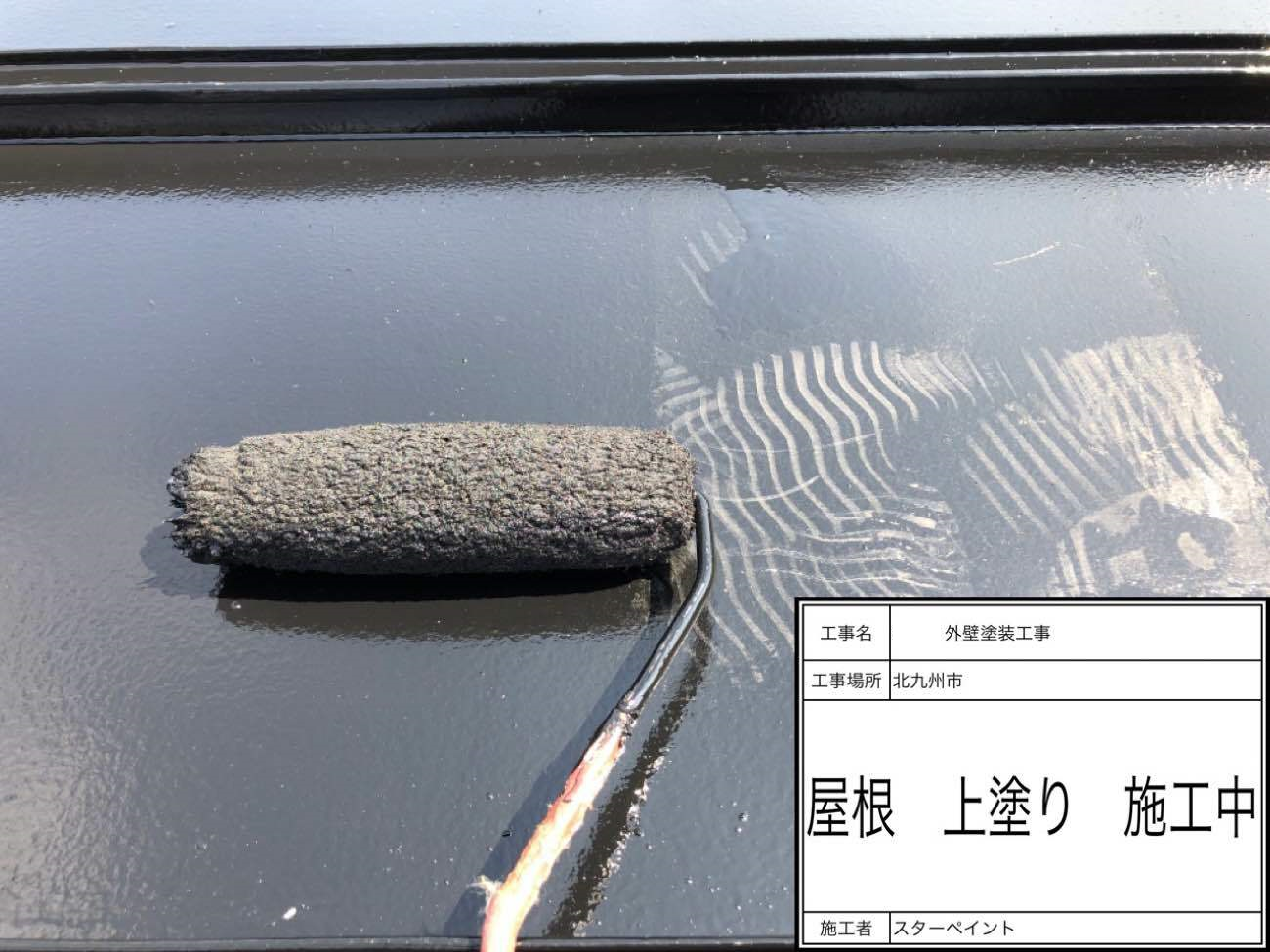 中塗りと同じ色を塗布し、塗膜に厚みを出していきます。 これで屋根の塗装作業が完了です。