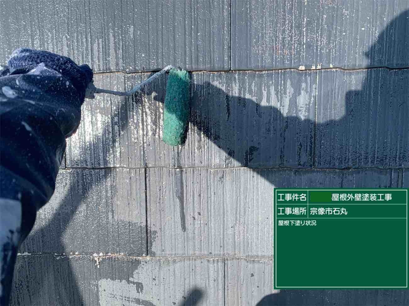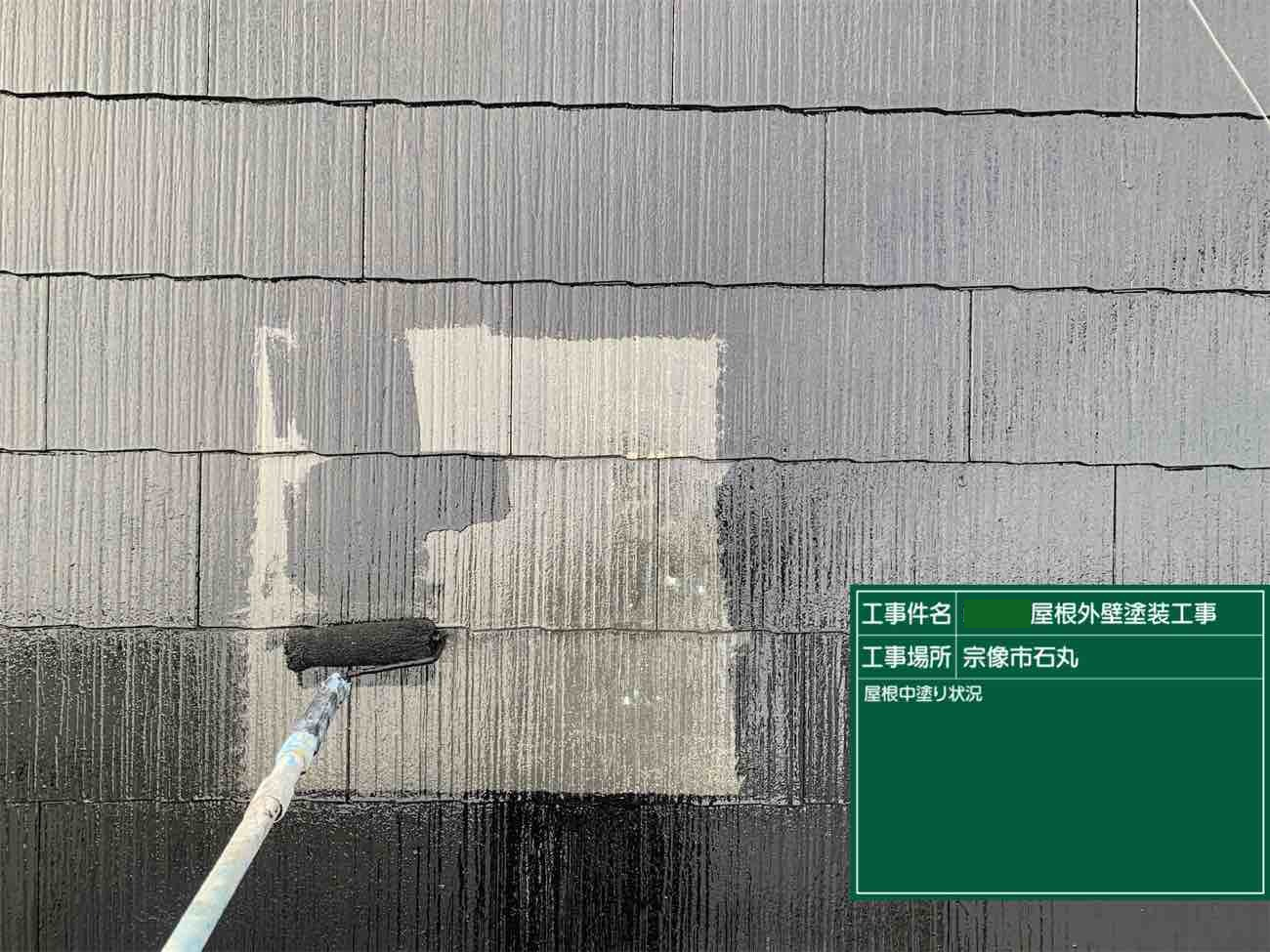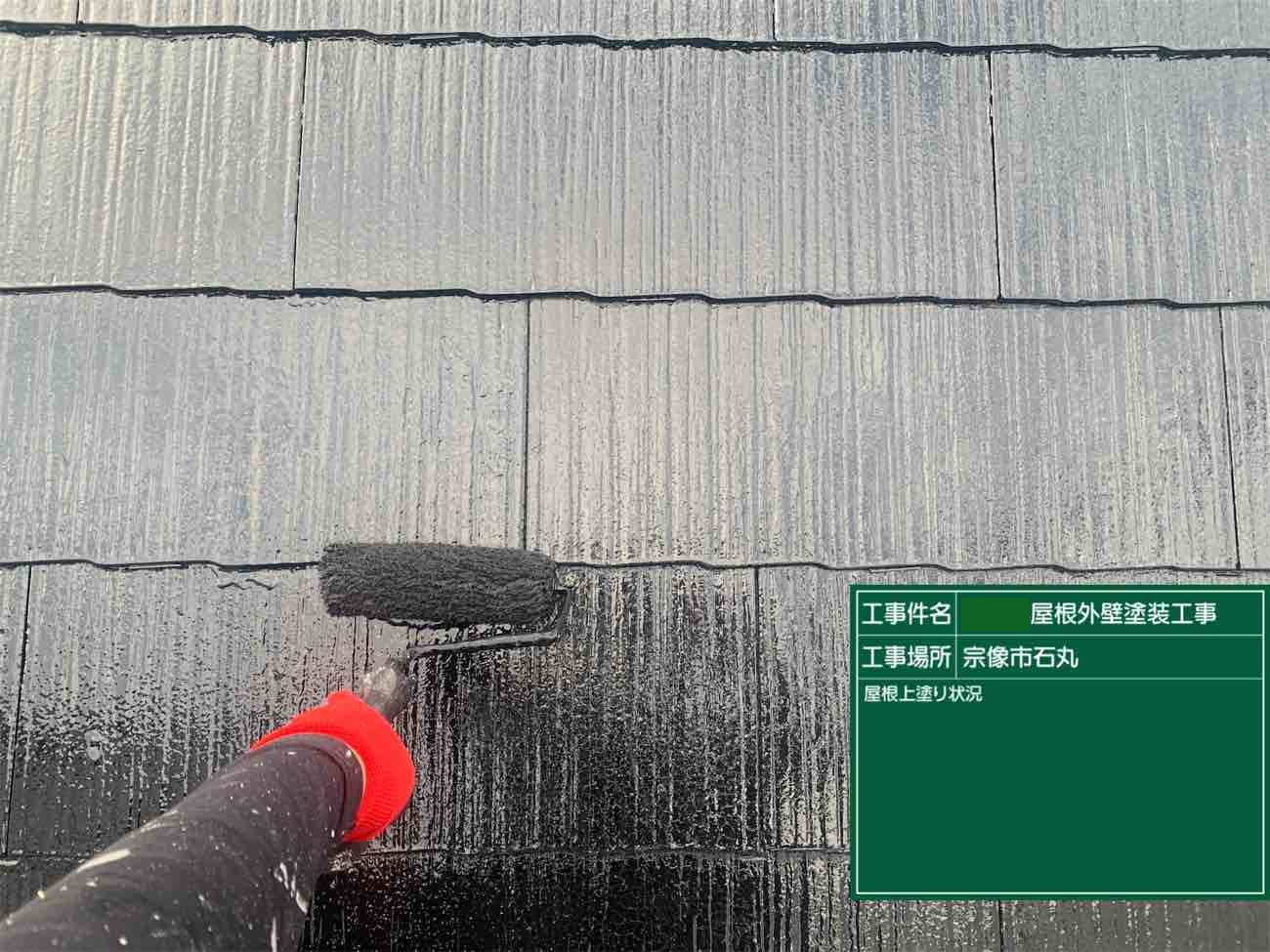 中塗りと同じ色を塗布し、塗膜に厚みを出していきます。これで屋根の塗装作業が完了です。