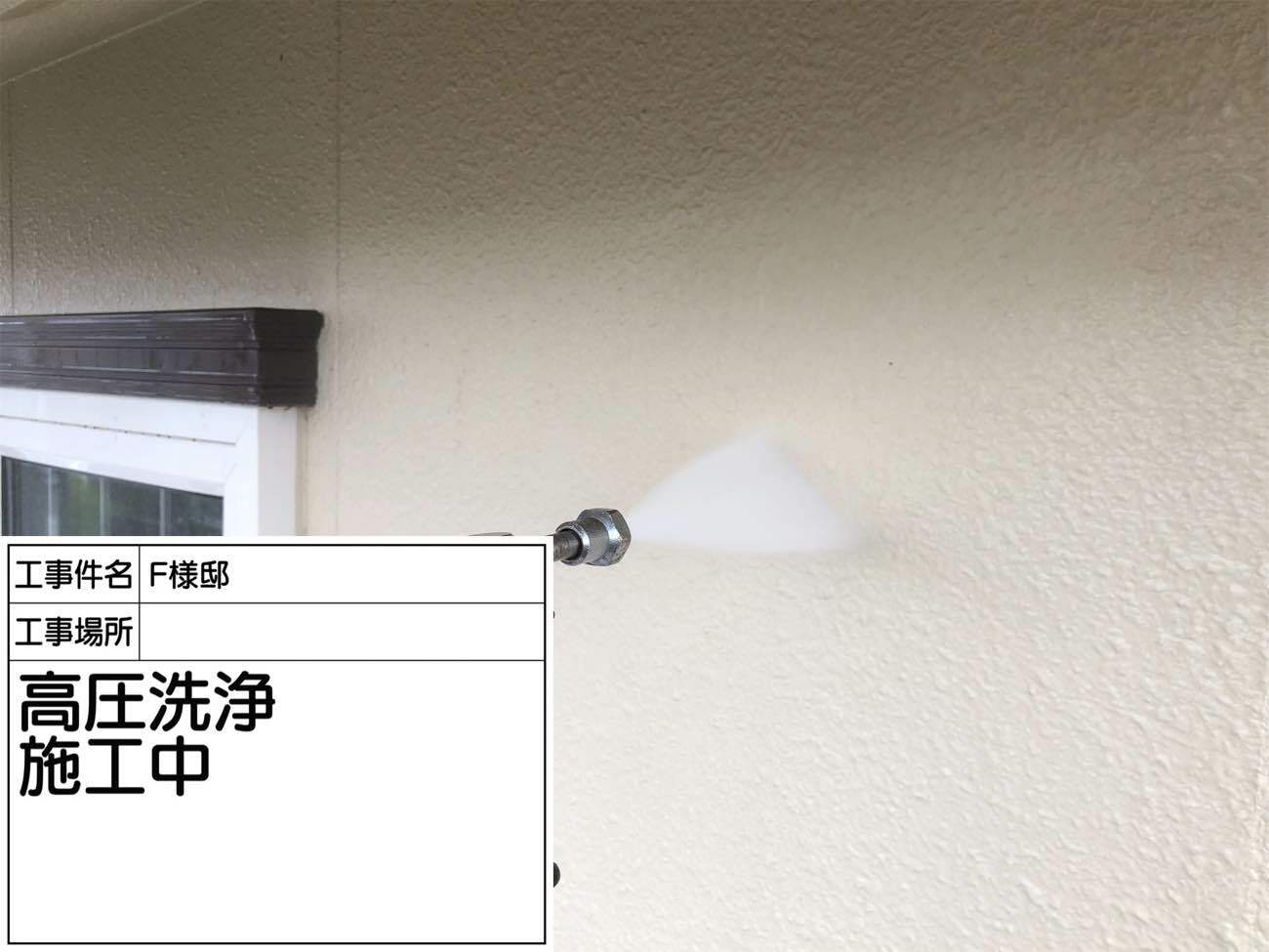 業務用の高圧洗浄機を使用し、付着した汚れなどを落としていきます。