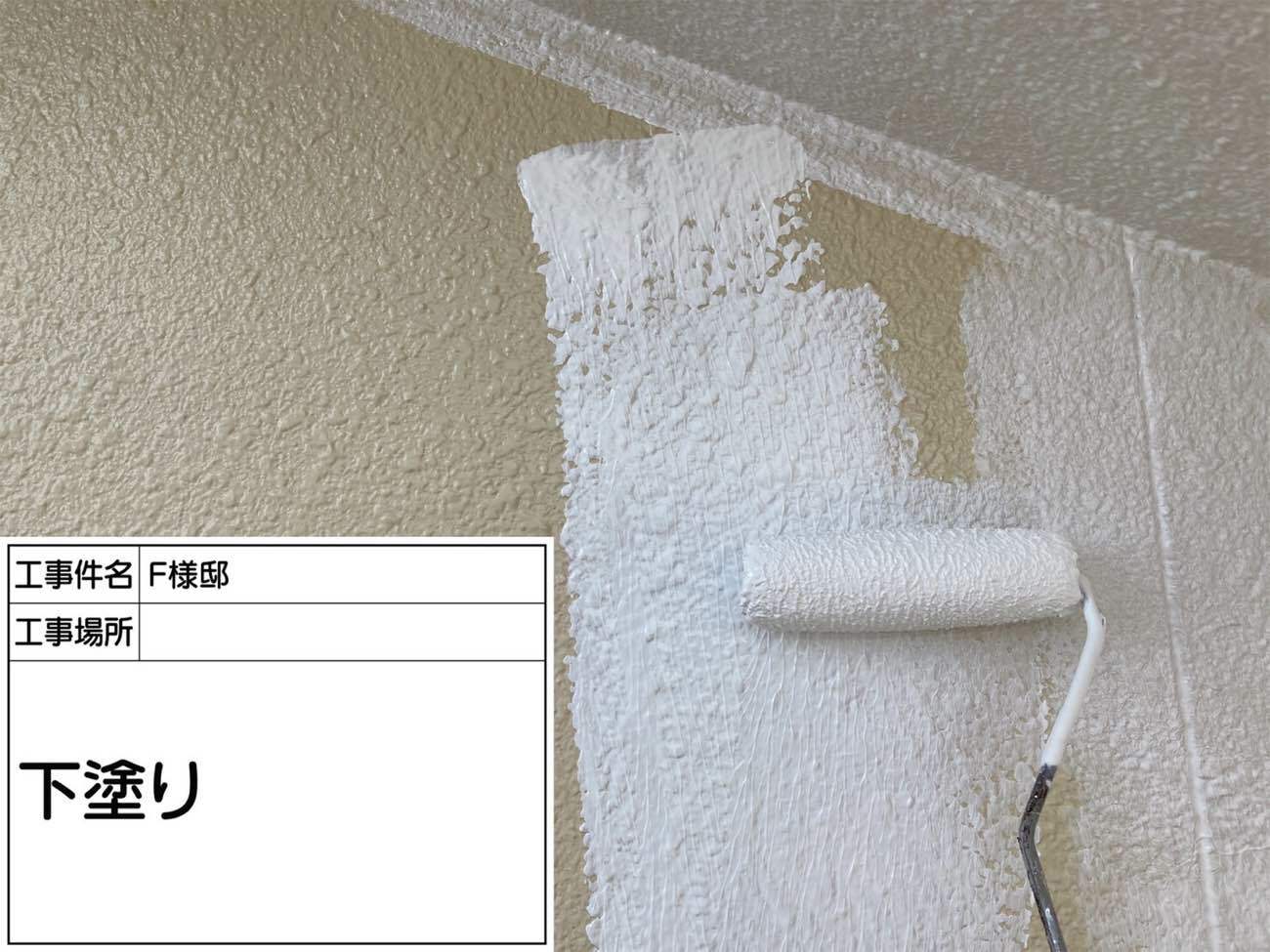 最初の塗装工程となる下塗りです。 外壁の材質や下地の劣化状況によって適切な下塗り剤を選ぶことが重要です。