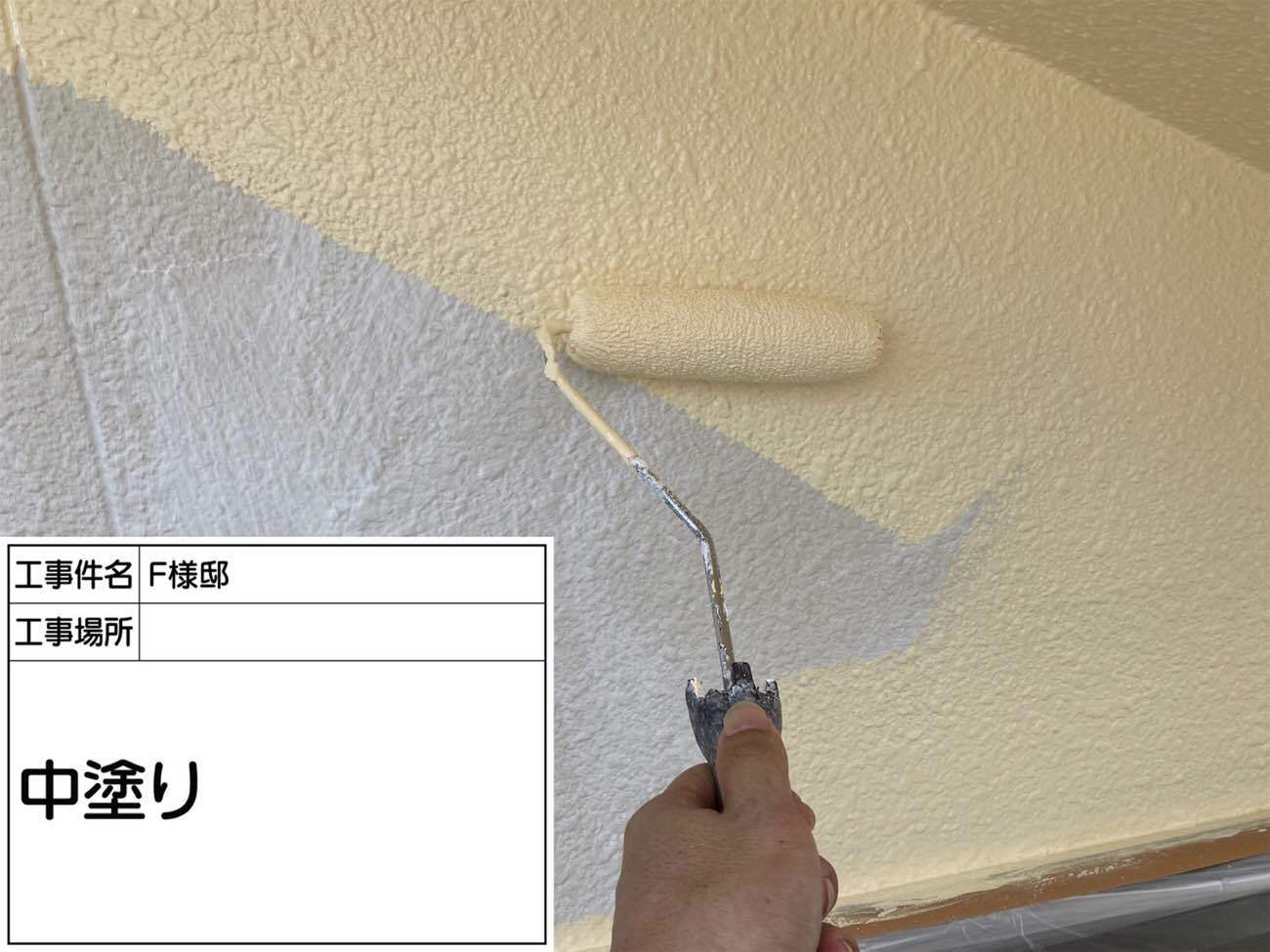 中塗り工程です。 塗膜に厚みを持たせ、耐久性や美観を高めます。