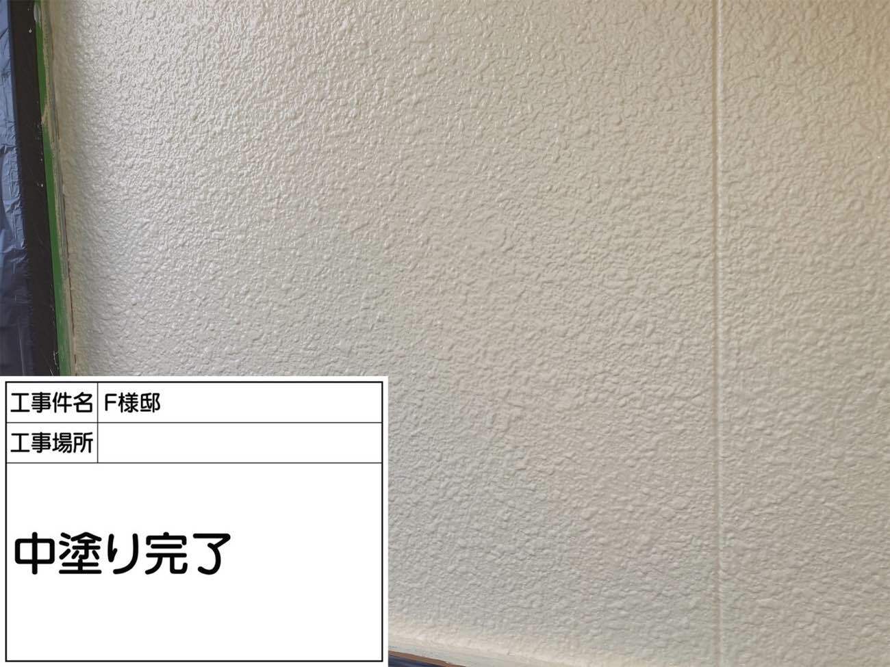 中塗り工程完了です。 元の外壁と異なる色で塗装する場合、この工程から大きく外観の印象が変わります。