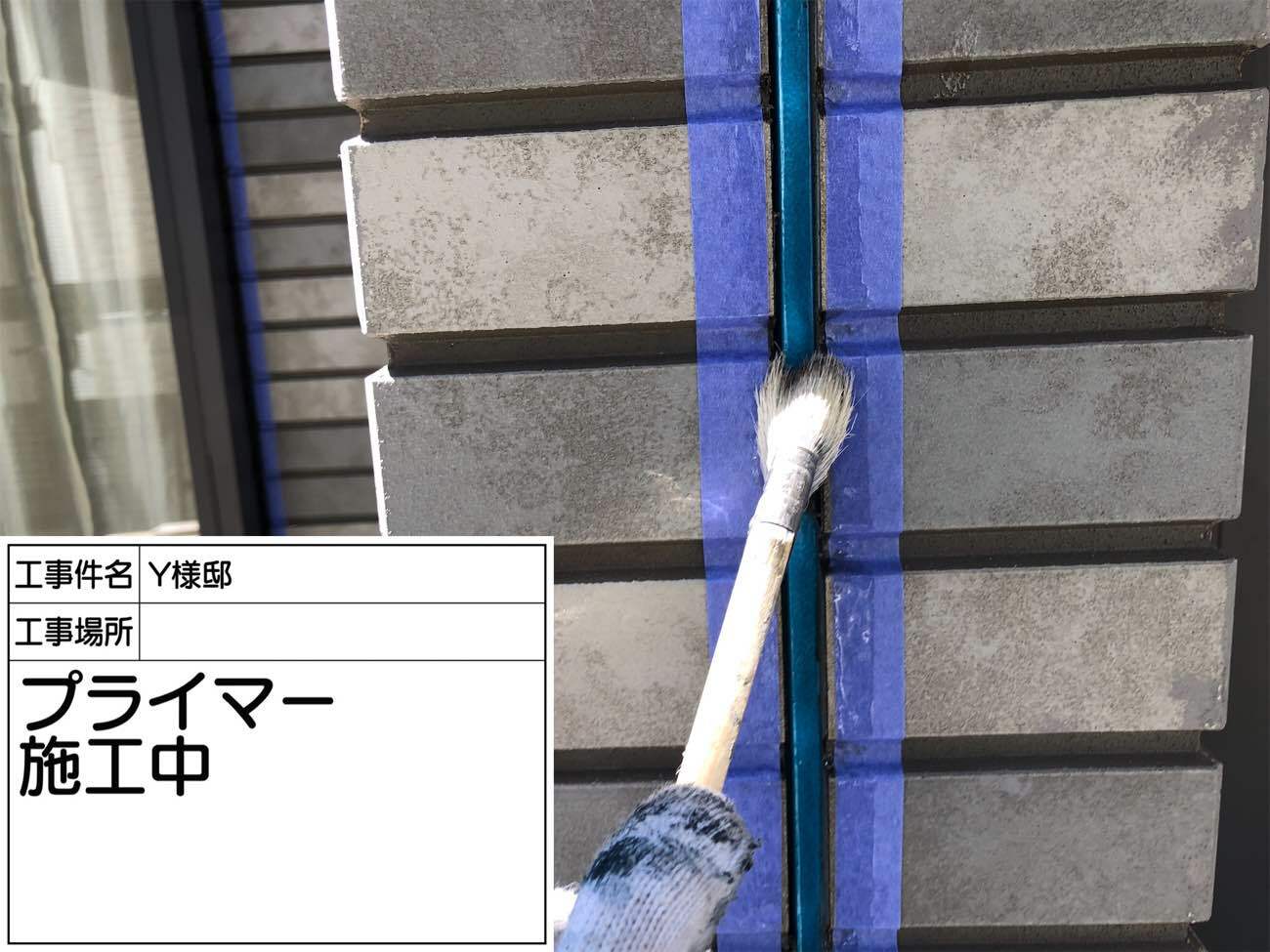 シーリングの撤去が完了したら、目地の側面にプライマーと塗布していきます。