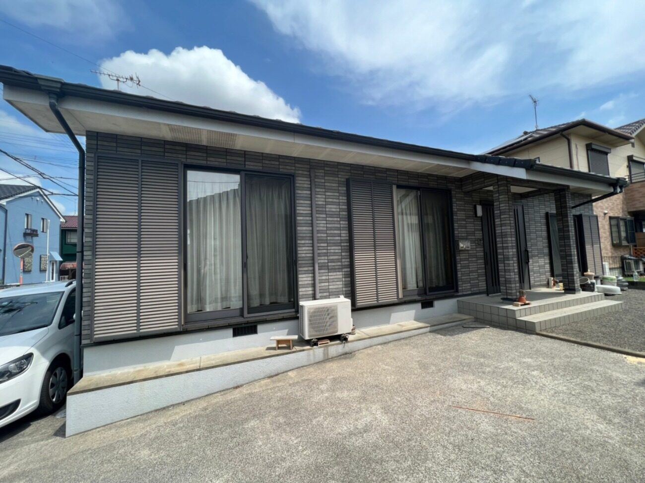 K.Y様 この度は弊社まで外壁塗装工事をご用命いただき、誠にありがとうございます! 今回、お家の外壁の色合いなども一新されるにあたり、雨戸なども外壁とお色を統一されておられ、 とてもおしゃれな仕上がりとなっております。K.Y様とのご縁を大事にし、これからもお家を守るサポートを させていただけましたら幸いです。今後ともよろしくお願いいたします。