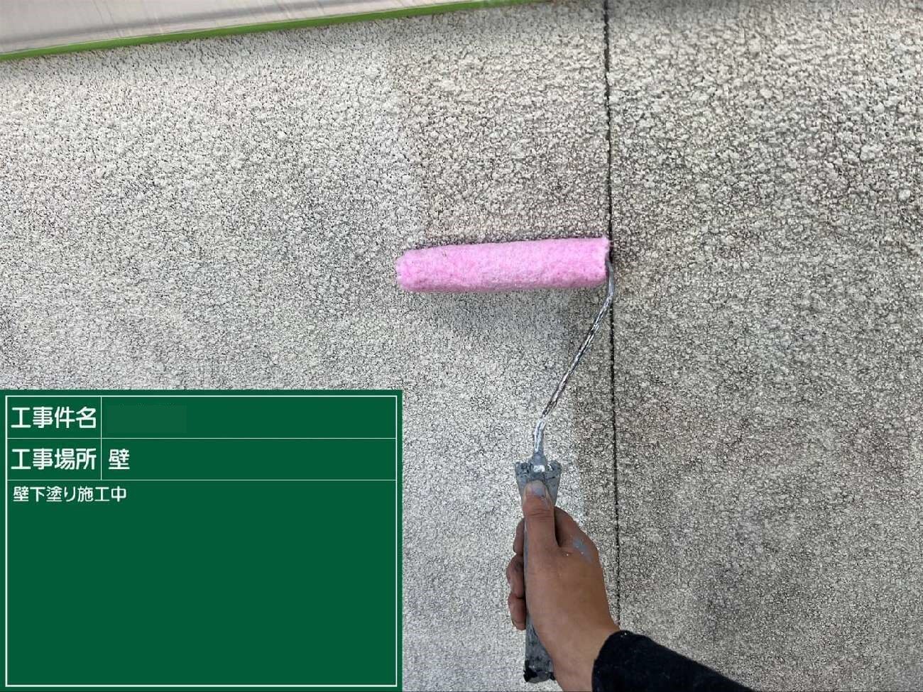 外壁の下塗り作業を行います。外壁の塗装をする際の塗料の密着性を高めていく役目を果たします。