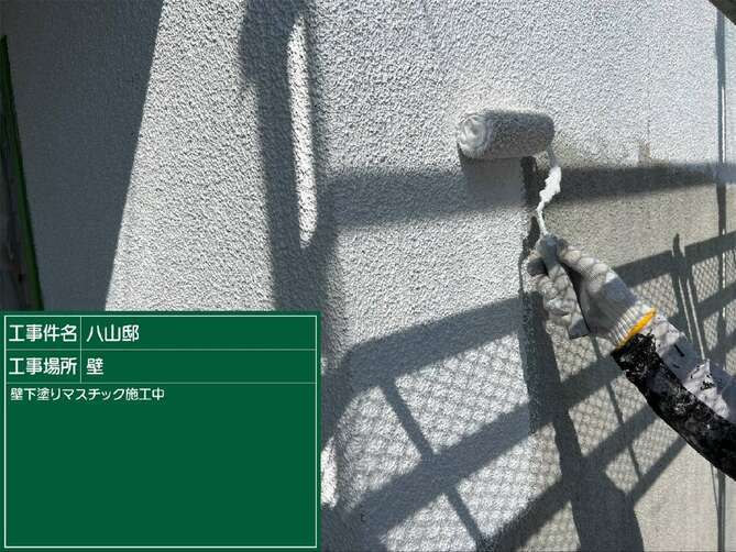 2回目の下塗り塗装でマスチック仕上げを行い、1回あたりで厚みのある膜にしていきます。