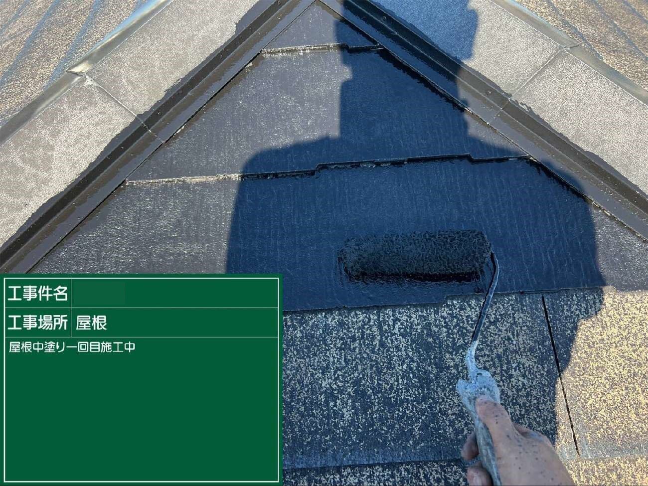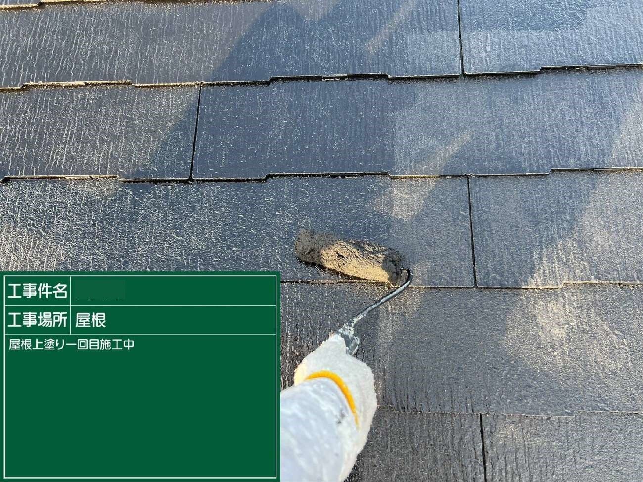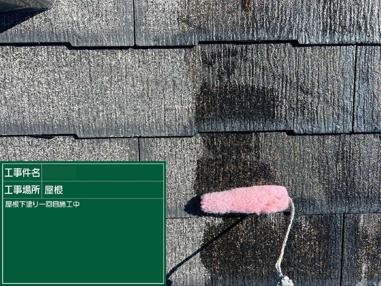 屋根も塗装を行います。これは下塗りの状況です。ここで密着性を高めます。