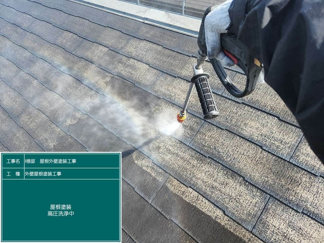 まずはじめに高圧洗浄で屋根をきれいにしていきます。屋根には汚れなどが付着しているため、洗浄し落としていきます。