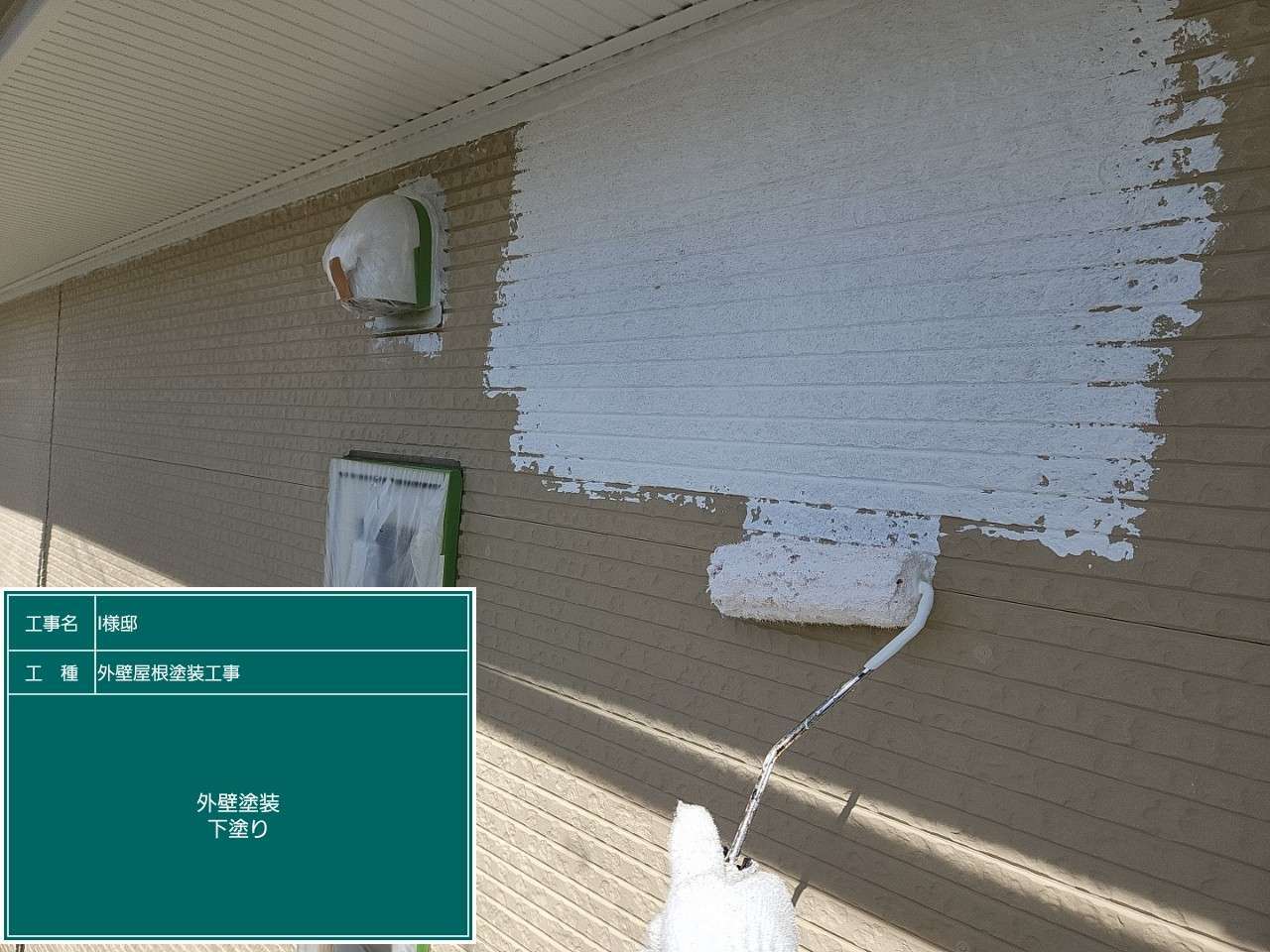 さて次は、外壁の塗装をご紹介していきます。外壁も屋根と同じように3回塗りです。これは下塗り塗装。