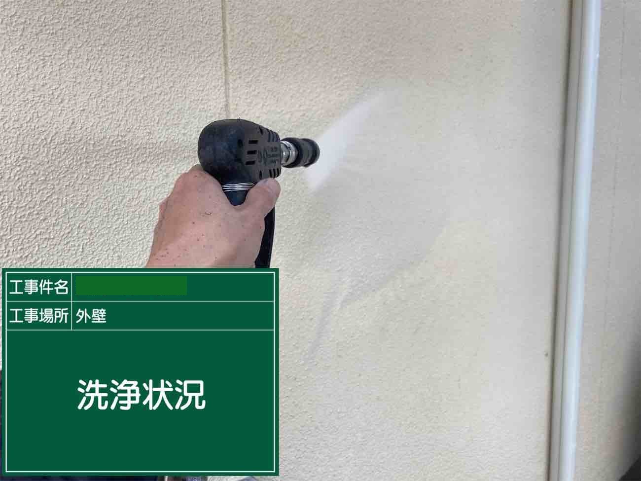 外壁についている汚れを洗い流していきます。
