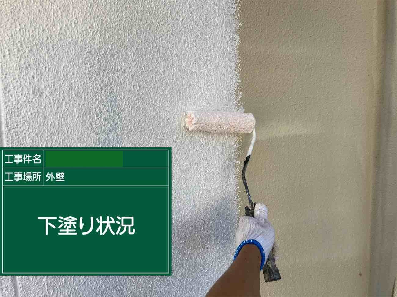 下塗り作業です。 下塗りで下地を整えて、うえから塗る塗料の密着性を高めてくれます。