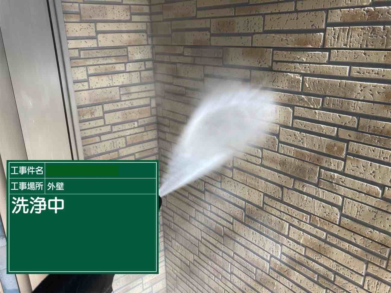 外壁も同様に洗い流します。 ここでしっかり洗い流すことで、塗料が綺麗につきます。