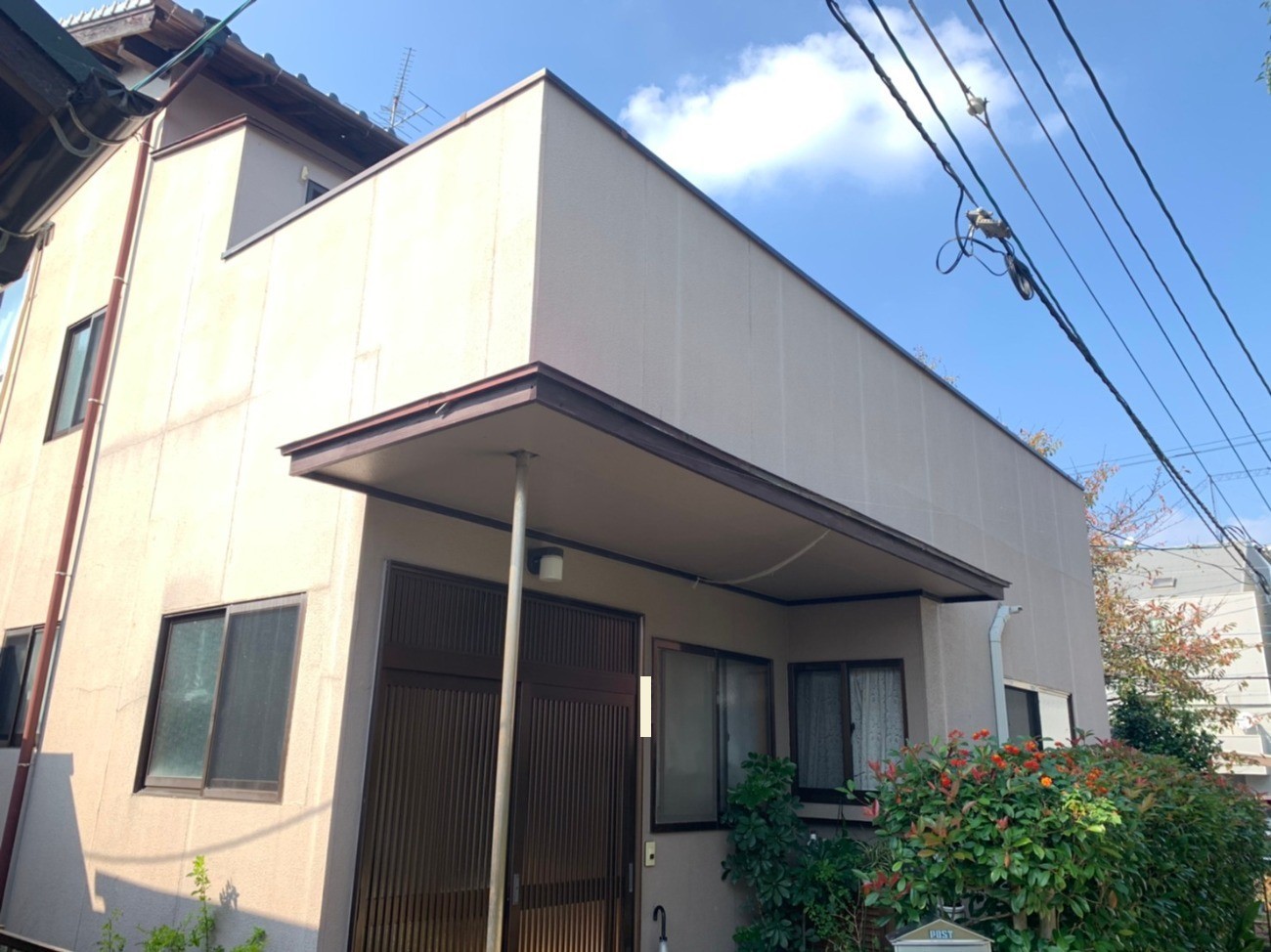 築40年の建物で、外壁の経年劣化に加え、雨樋の劣化や錆も見受けられたため、今回は塗装工事とあわせて雨樋交換・エアコン工事を同時に行いました。 近隣との距離が近...