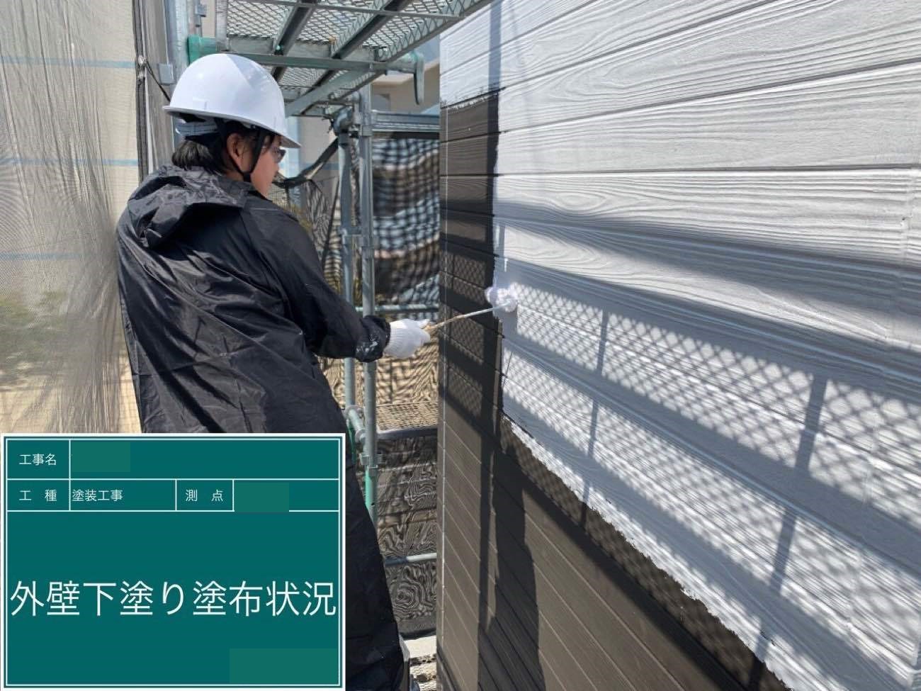 下塗りが、下地と上から塗る塗料の密着性を高めます。