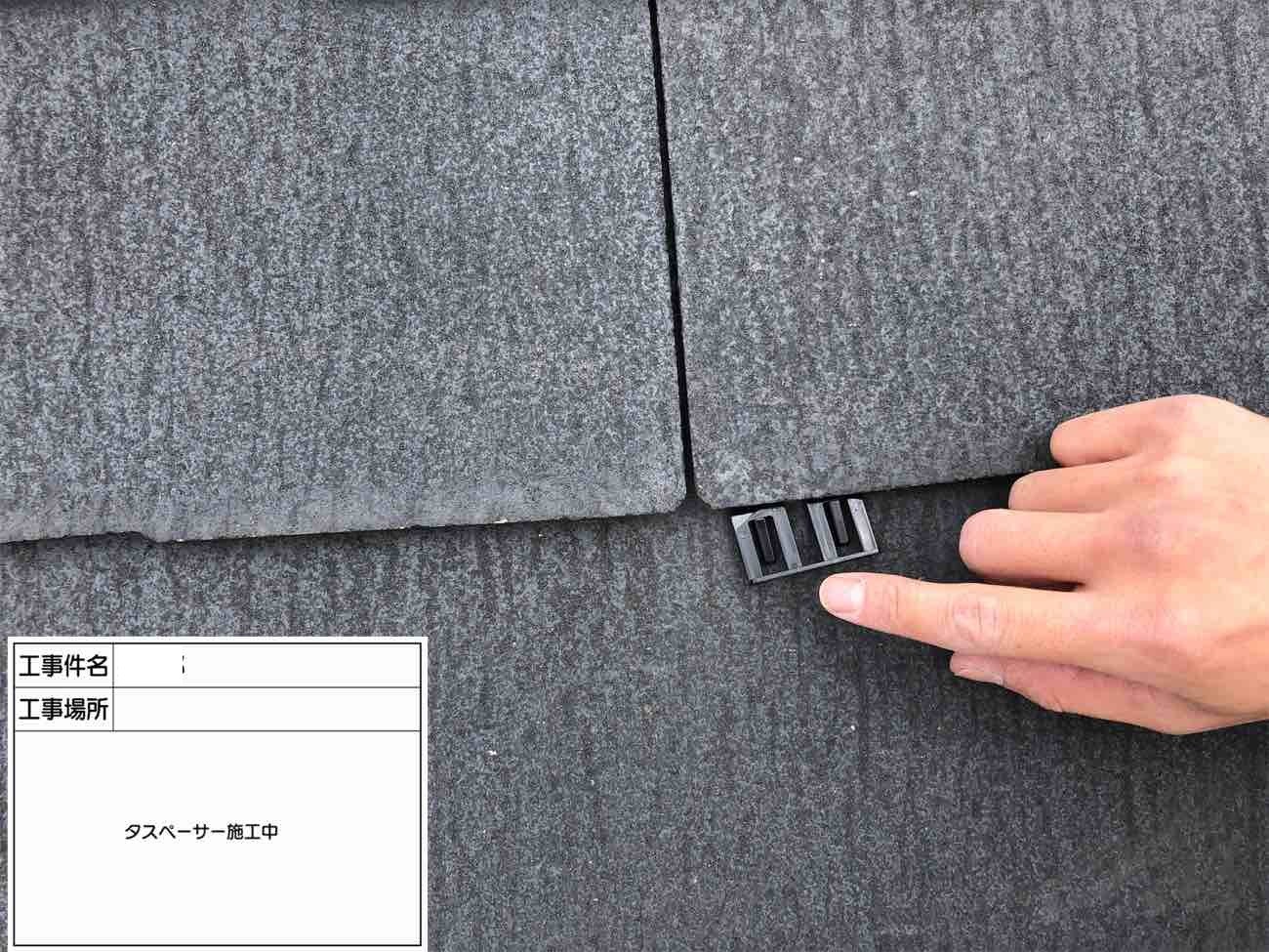 屋根の隙間にタスペーサーを装着していきます。