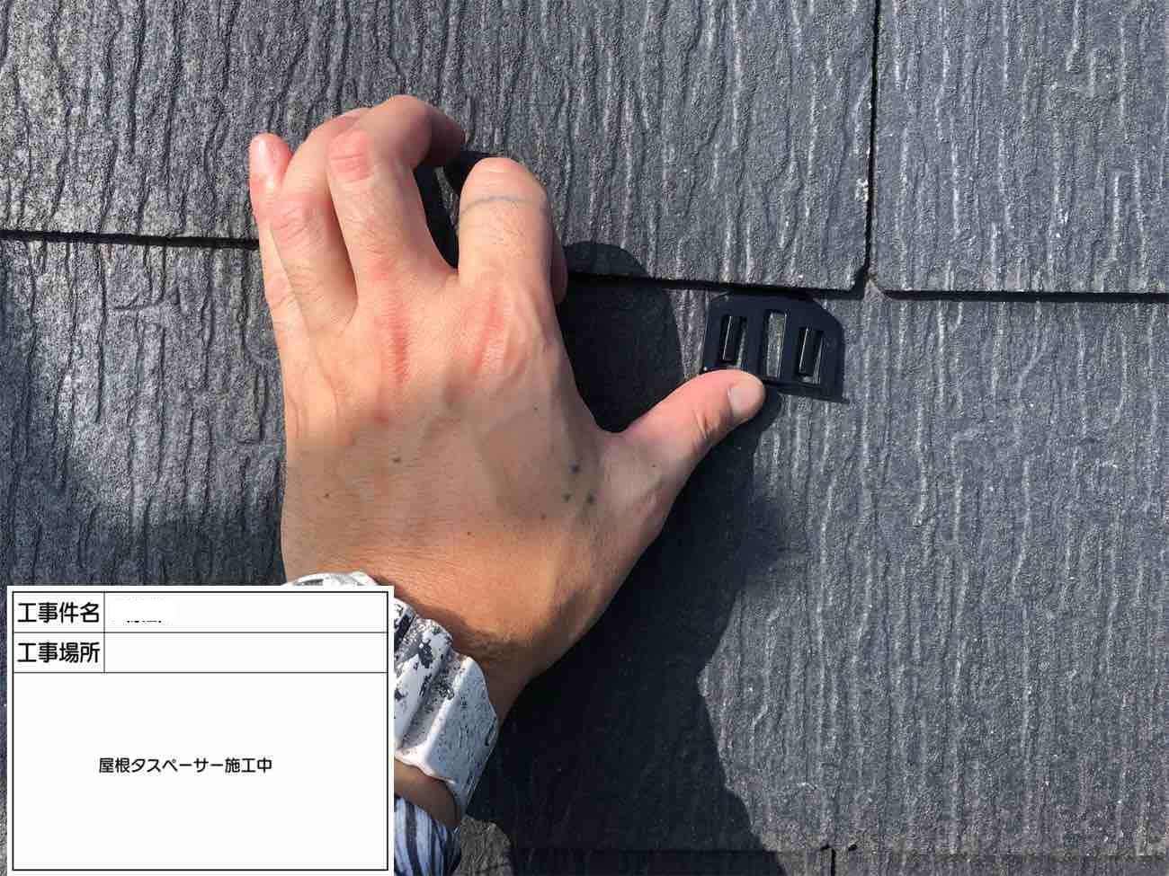 屋根の隙間にタスペーサーを装着し、