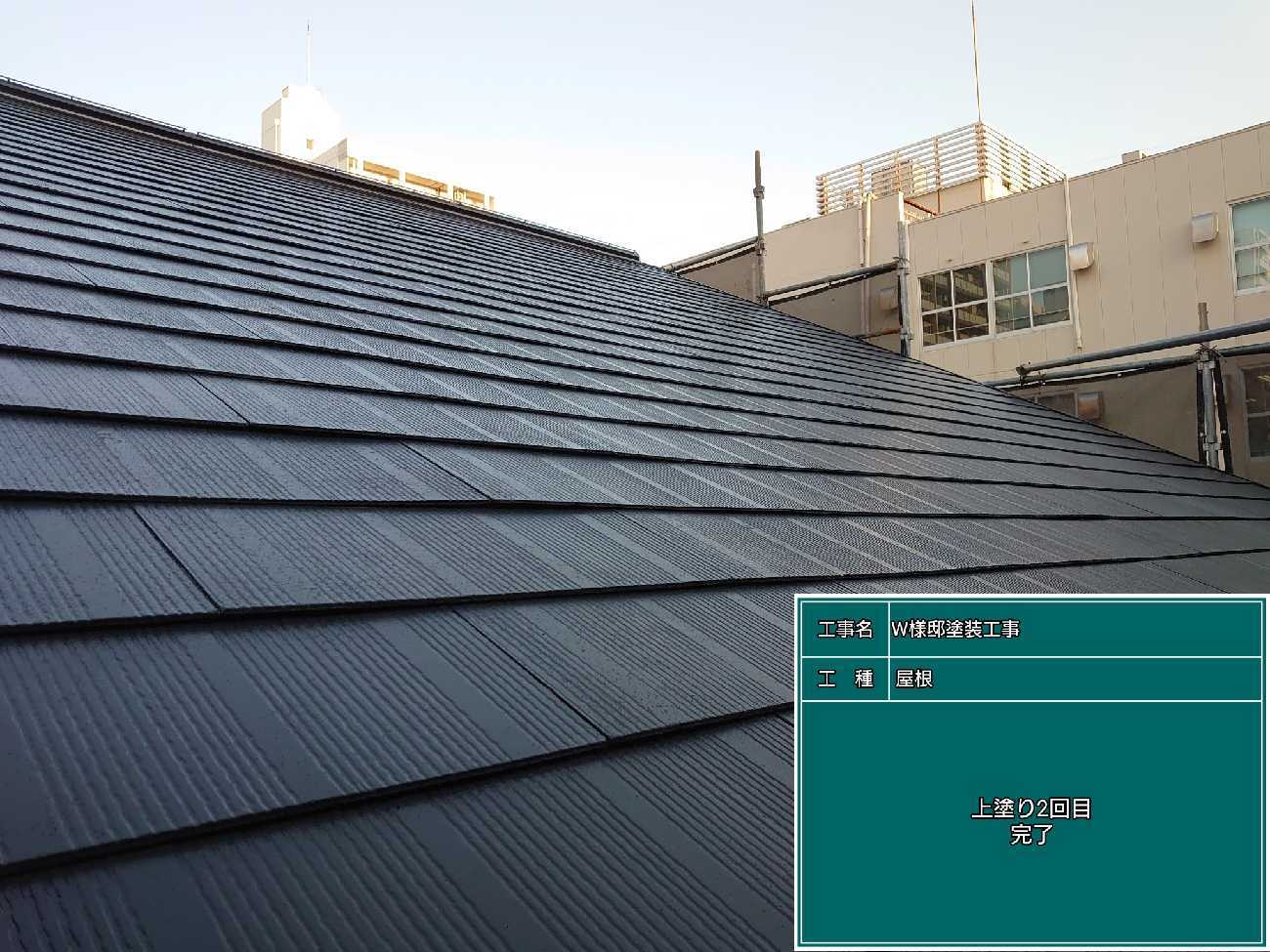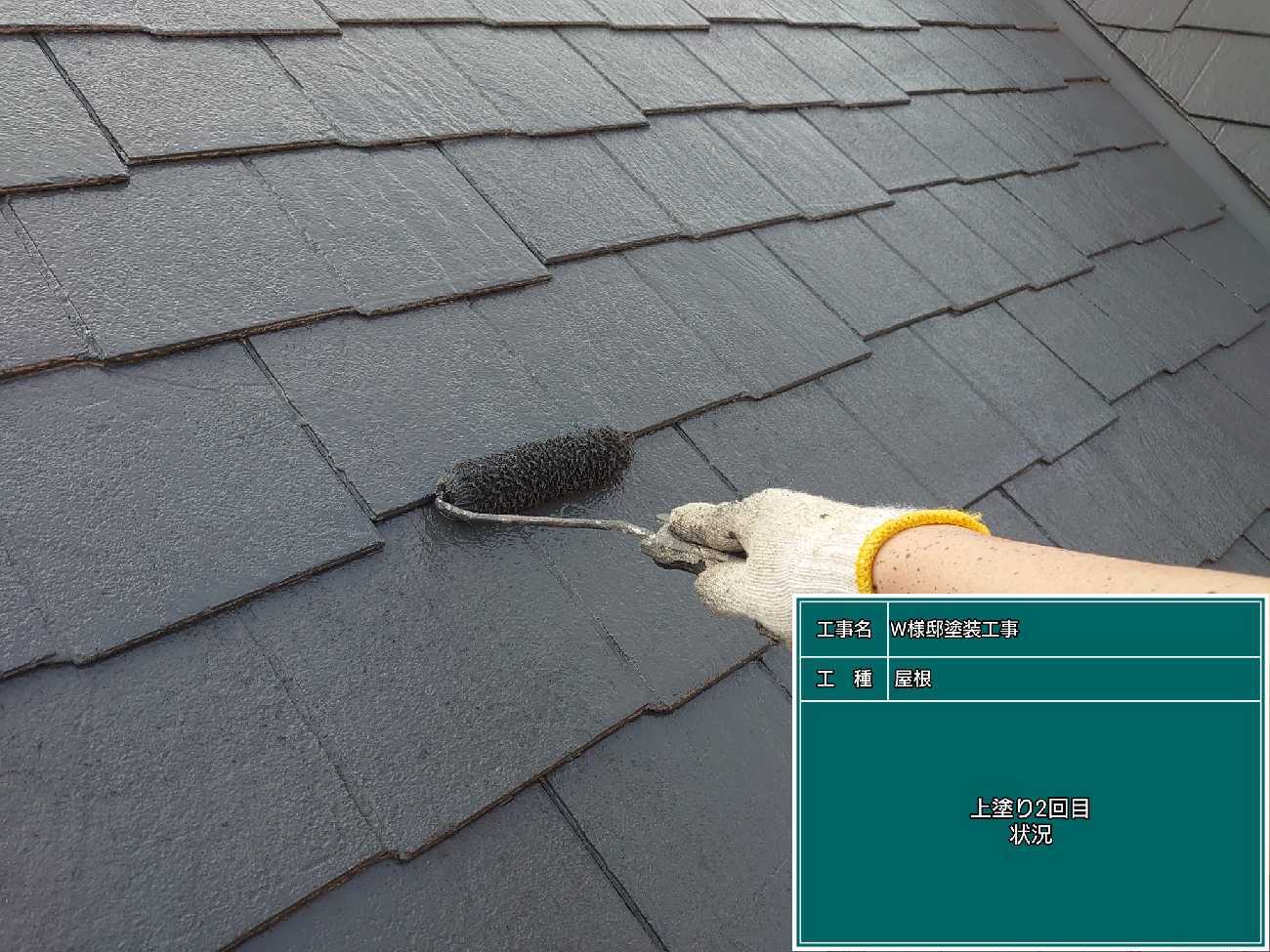 色味を加えて屋根も塗膜に厚みを持たせます。