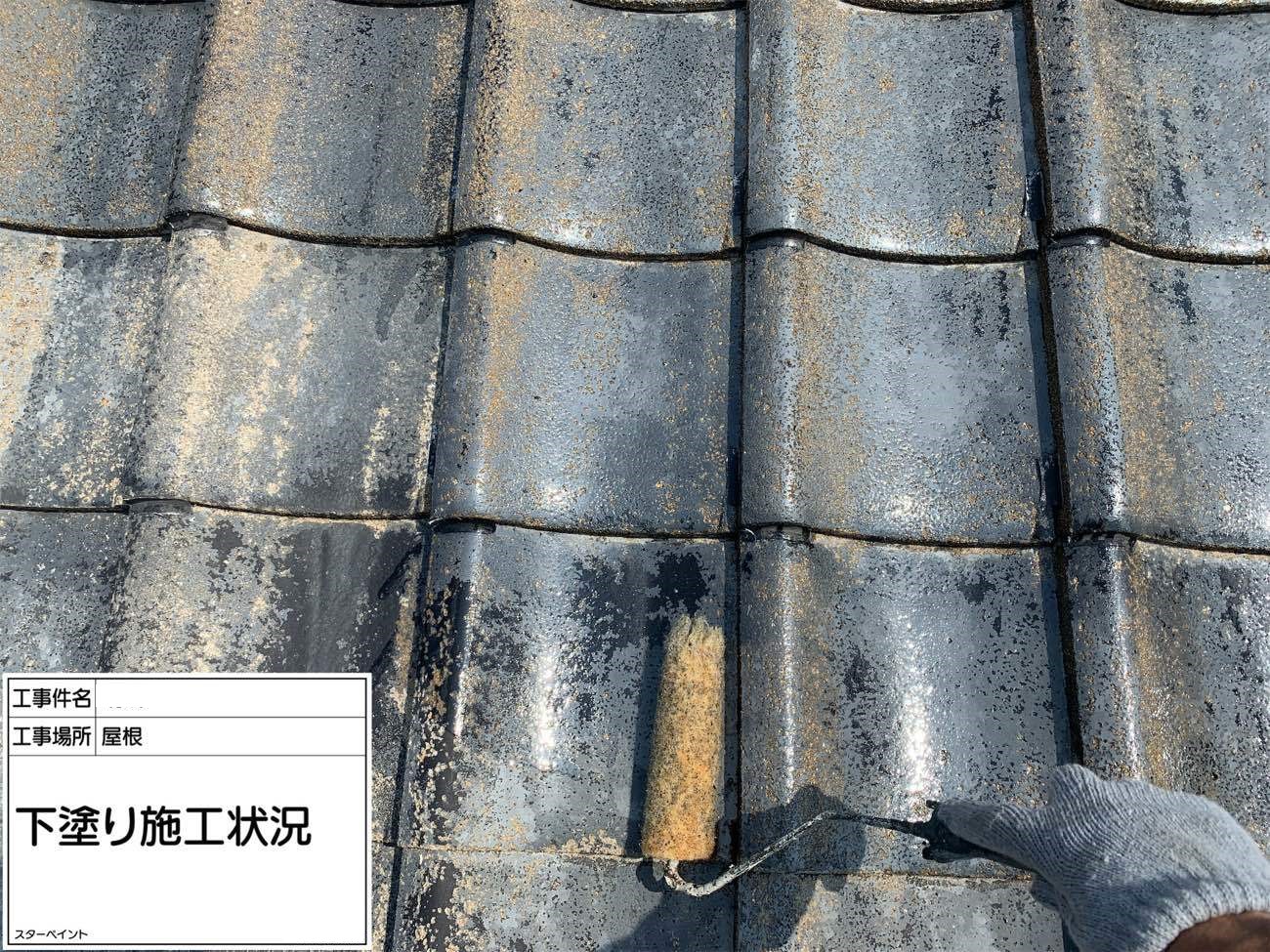 屋根の下塗り完了です。