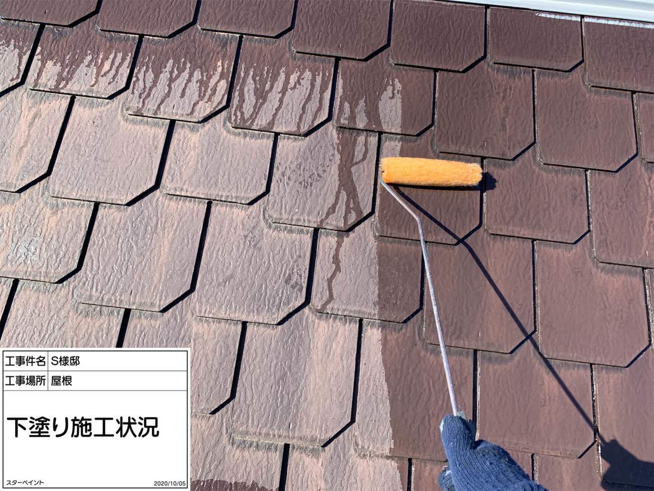 屋根の下塗り完了です。