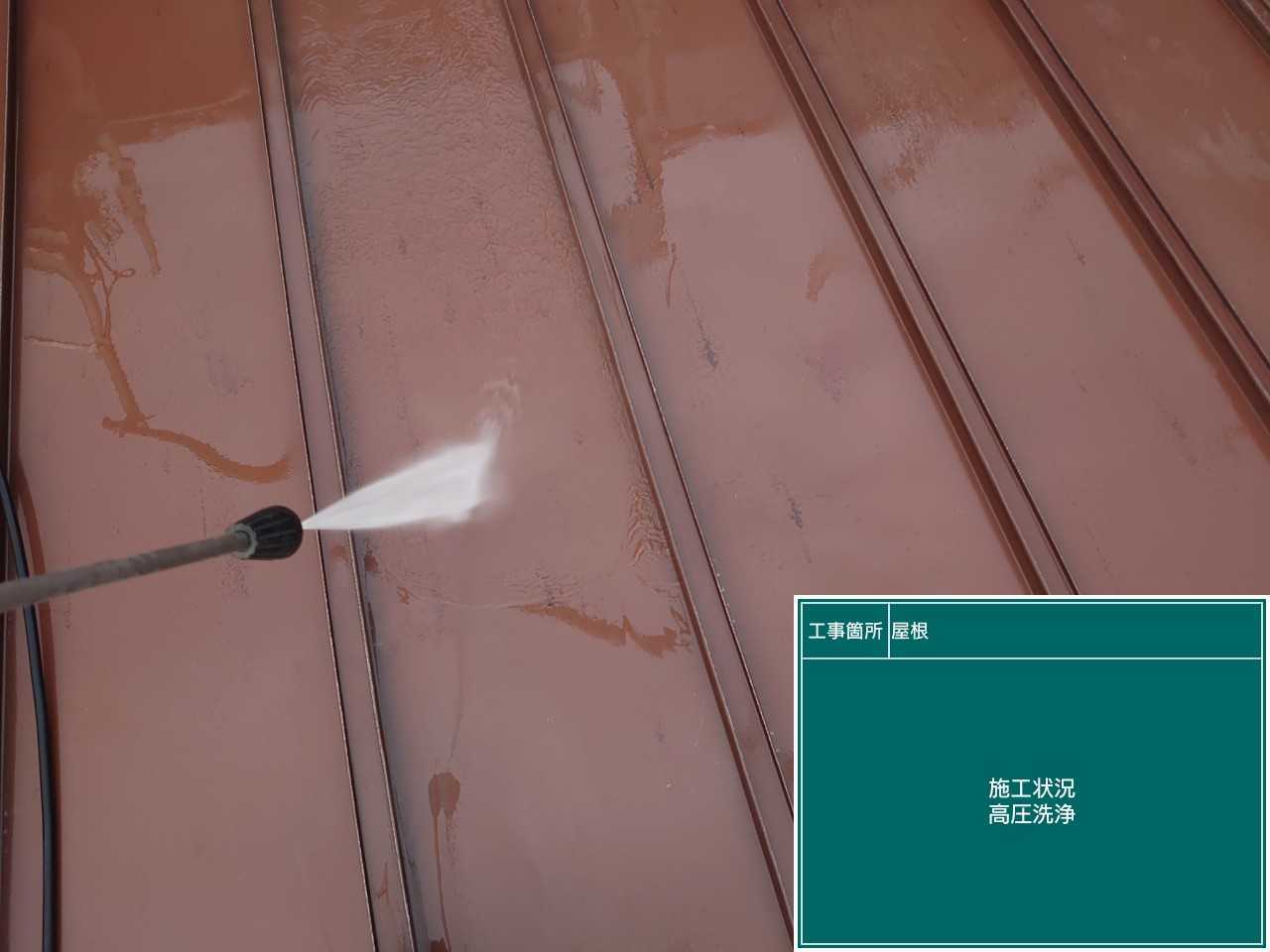 屋根の洗浄作業を行います。 汚れやごみなどを取り除いてから塗装を行っていきます。