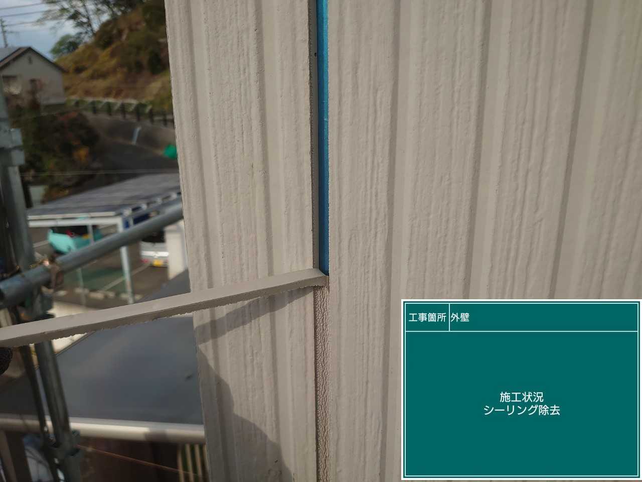 外壁にあるシーリングを撤去していきます。