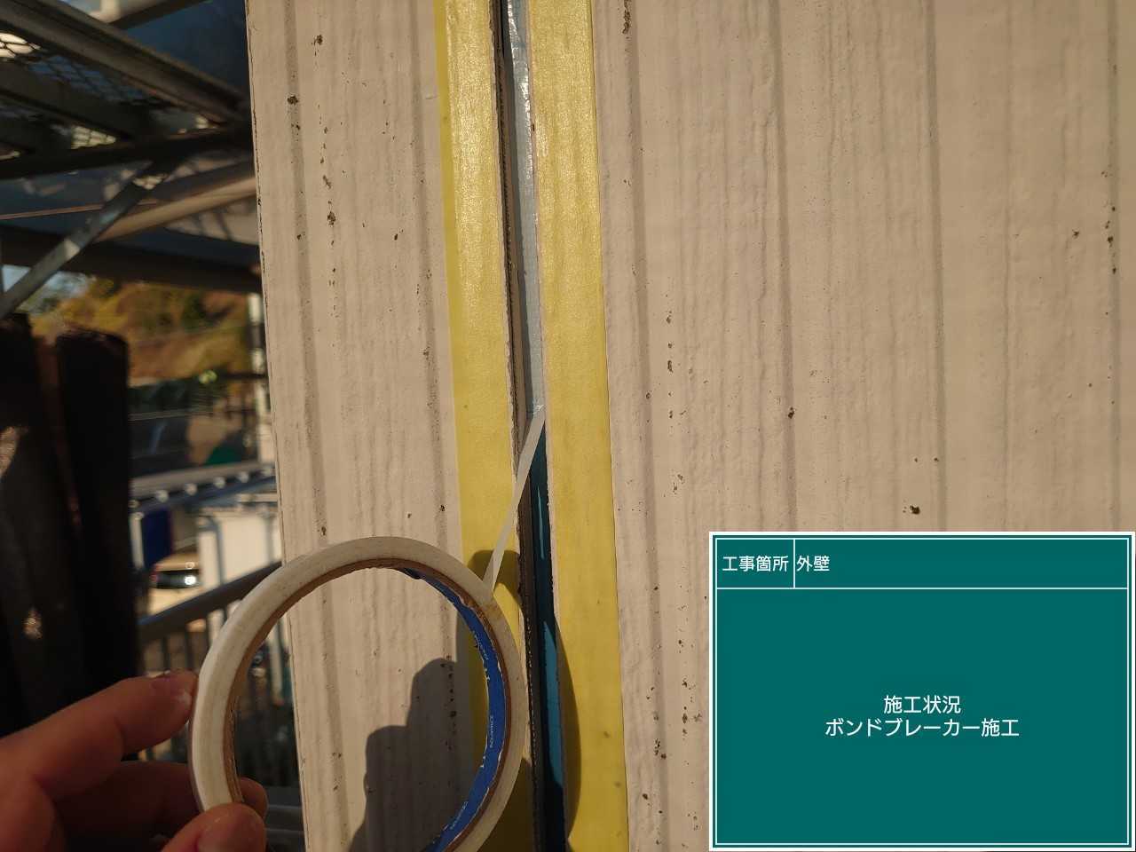 プライマーと塗布したら、ボンドブレーカーを目地の底に接着させていきます。