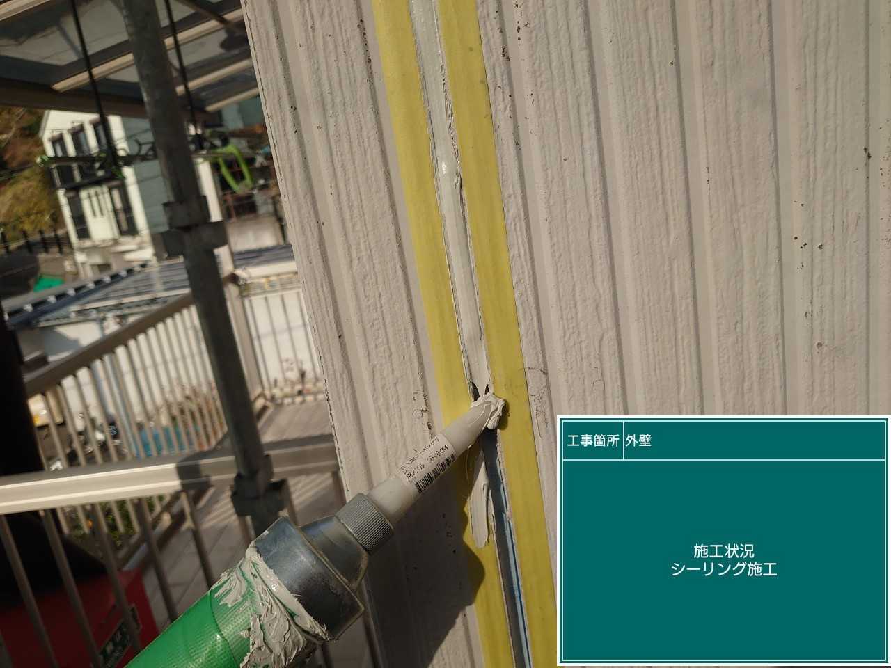 目地に沿ってシーリングを打ち替えて行きます。充填し新しいシーリングにしていく作業になります。