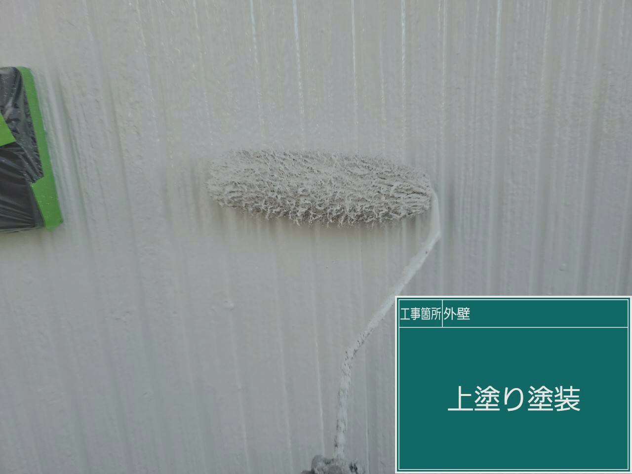 外壁の上塗り作業です。上塗りで仕上げていきます。