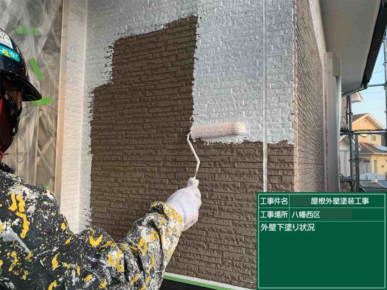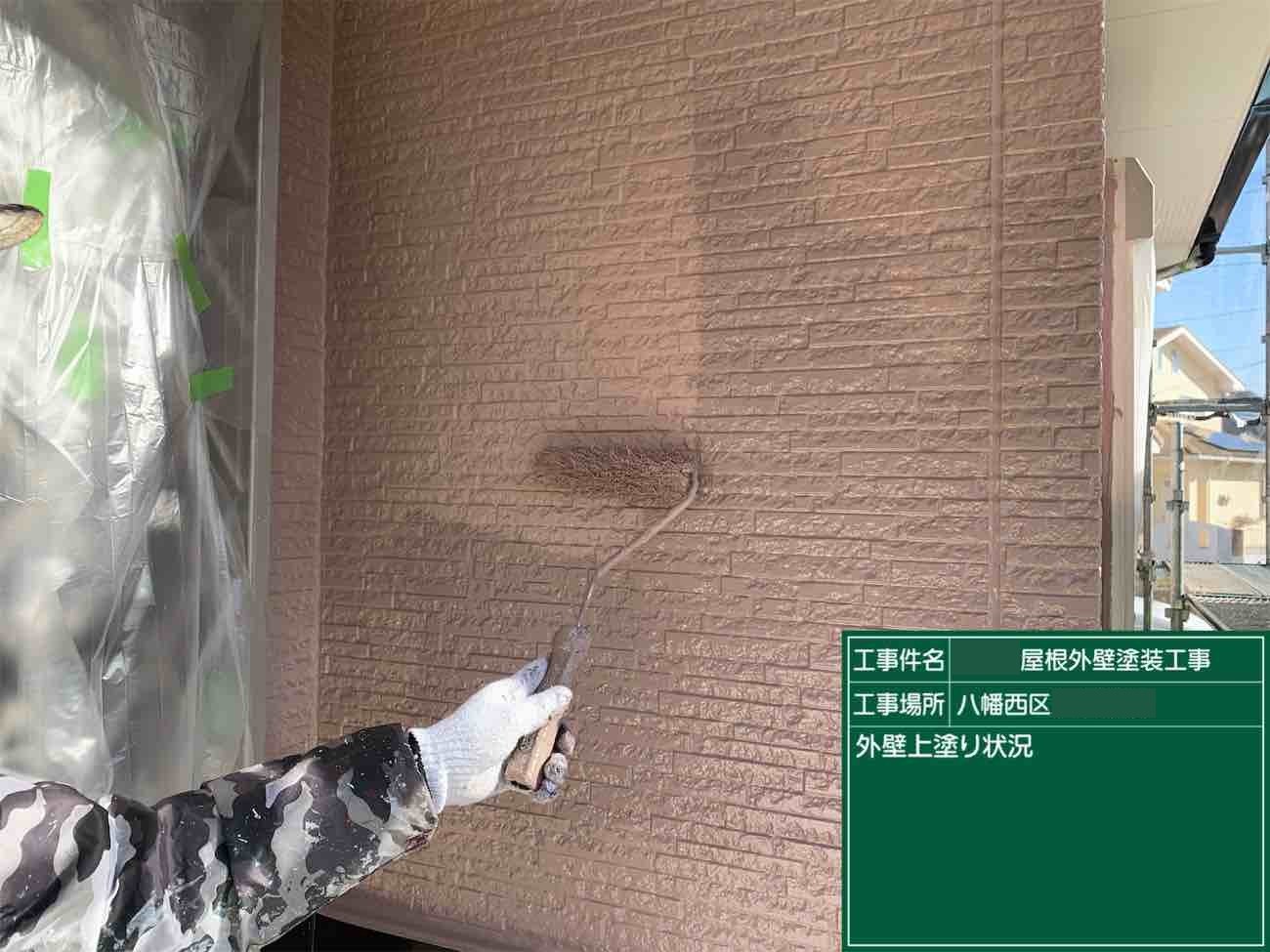 外壁も同様に、下塗り→中塗り→上塗りの順番に塗装を行います。