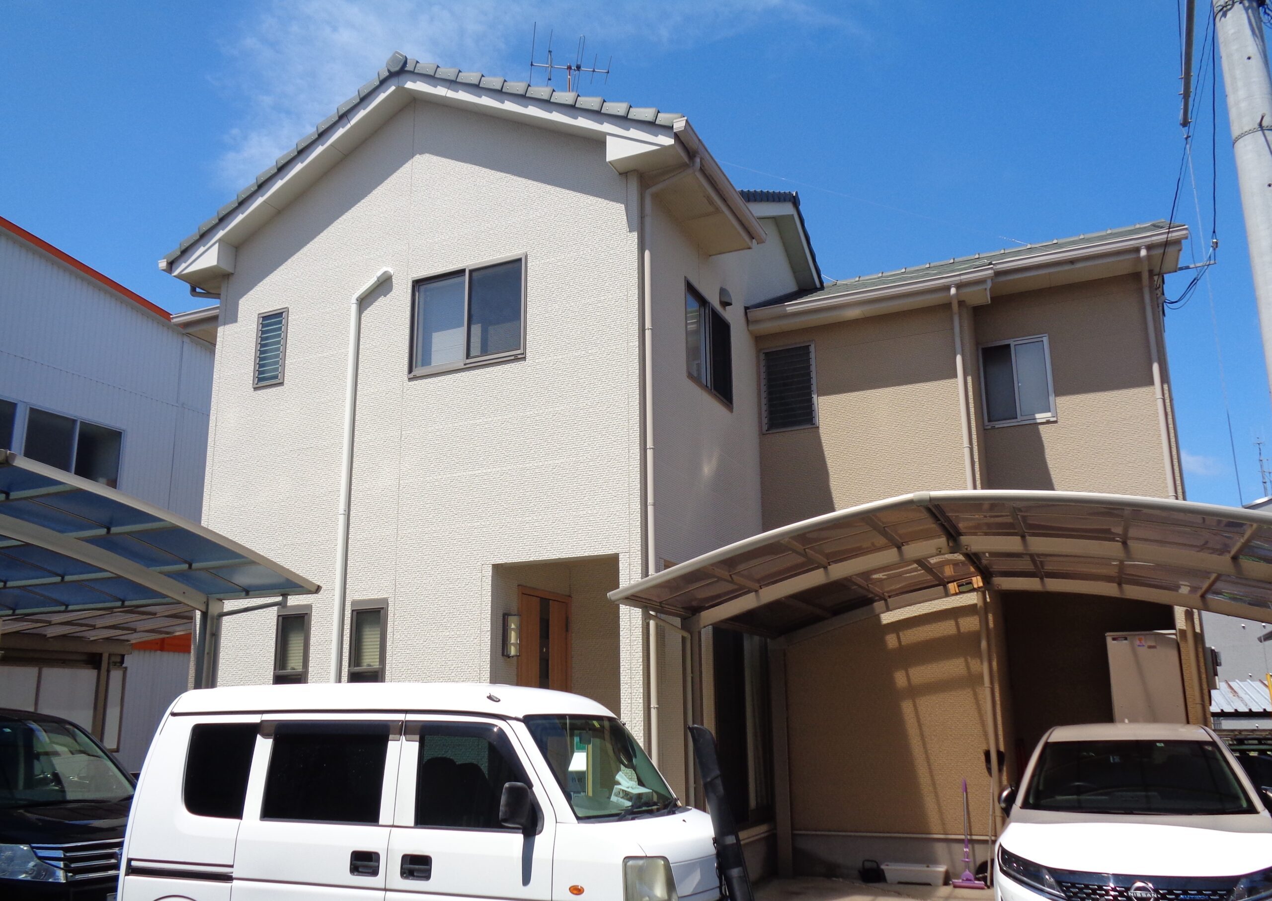 職人の皆さん良い方で猛暑の中施工して頂きありがとうございます。子供たちが出る際には自転車を出していただいたり挨拶もしっかりされて、たまに来る両親も良い方達に施工してもらっているねと申しておりました。シミュレーション通りの仕上がりになりました。
