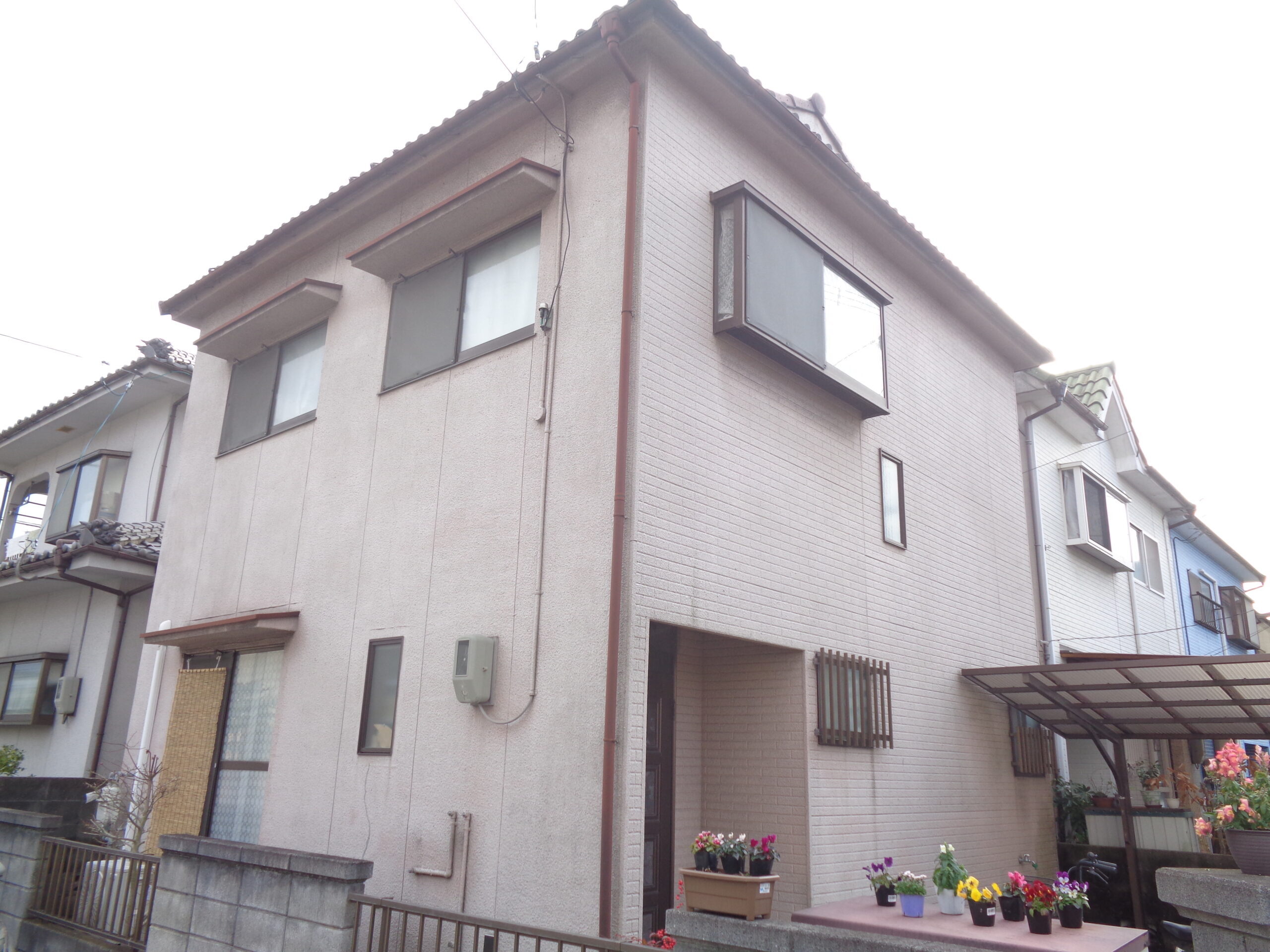 今回のお住まいは、モルタル外壁特有の経年劣化が進み、表面の色あせや細かなひび割れ(ヘアクラック)が複数箇所で確認できる状態でした。防水性能も低下しており、早めの...