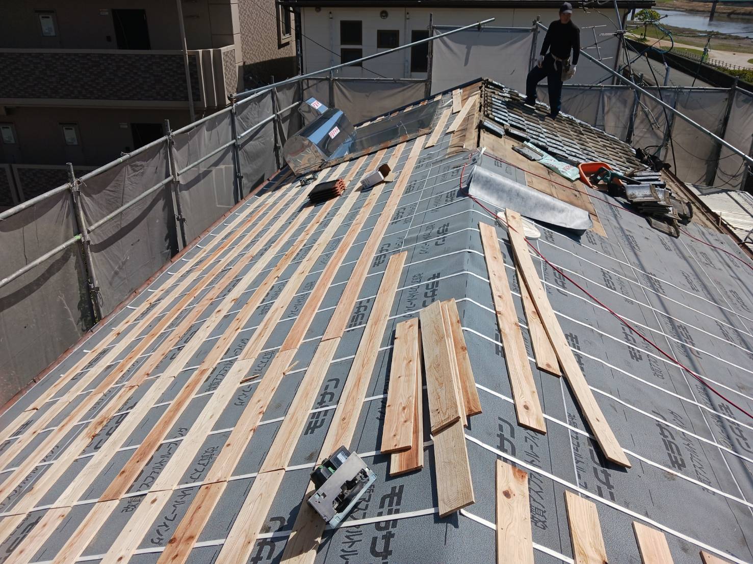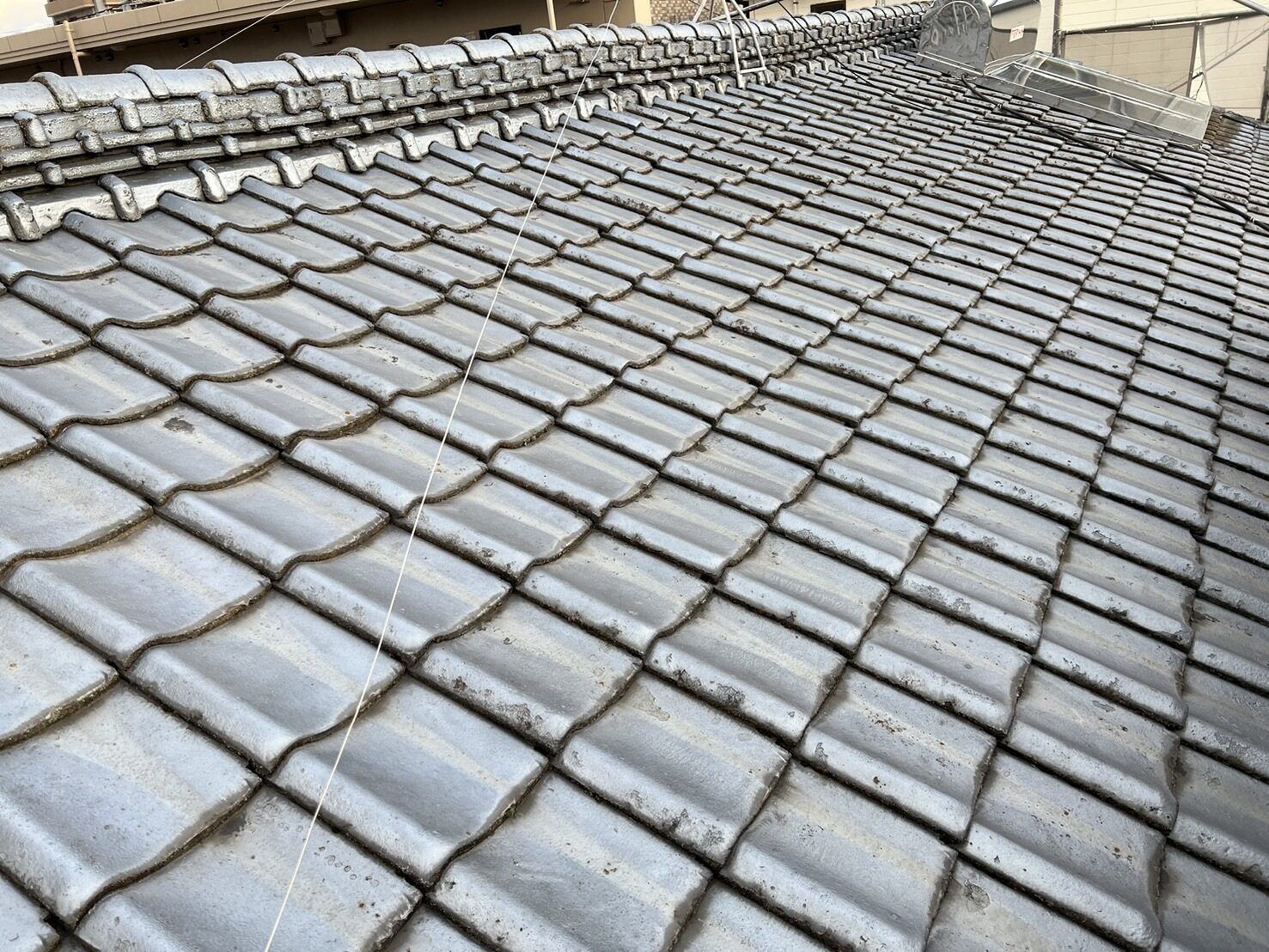 表面がガラス質の被膜で覆われた陶器質の屋根材で、変色や変質が起こりにくく、時間が経過しても美しい外観を保つことがでる 鶴弥 スーパートライに葺き替えを行いました。