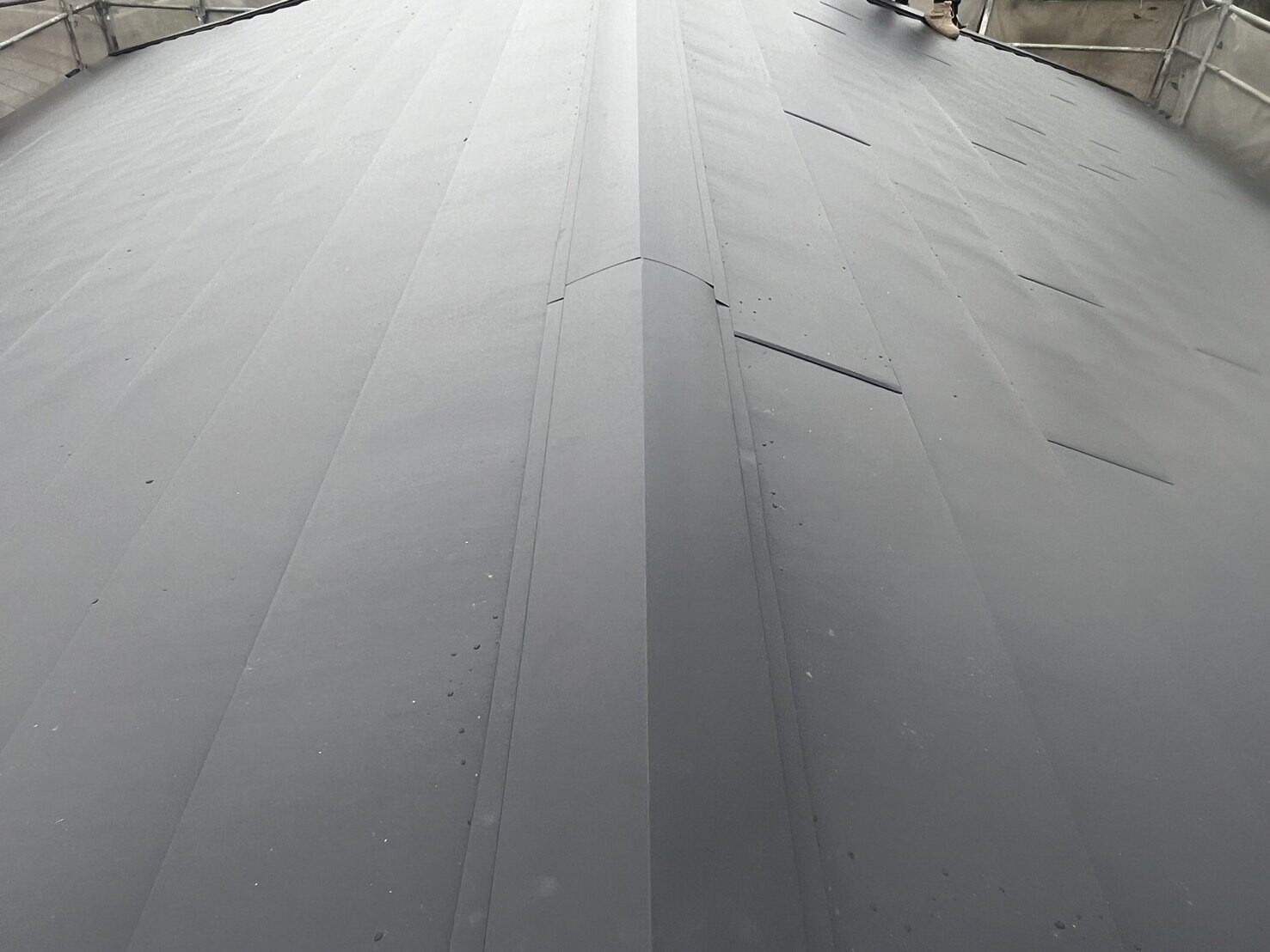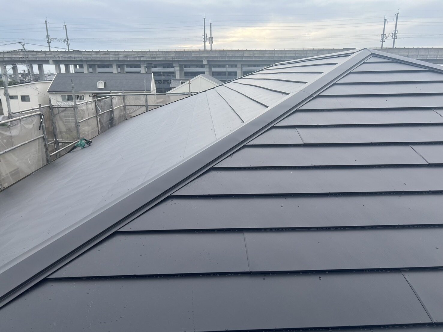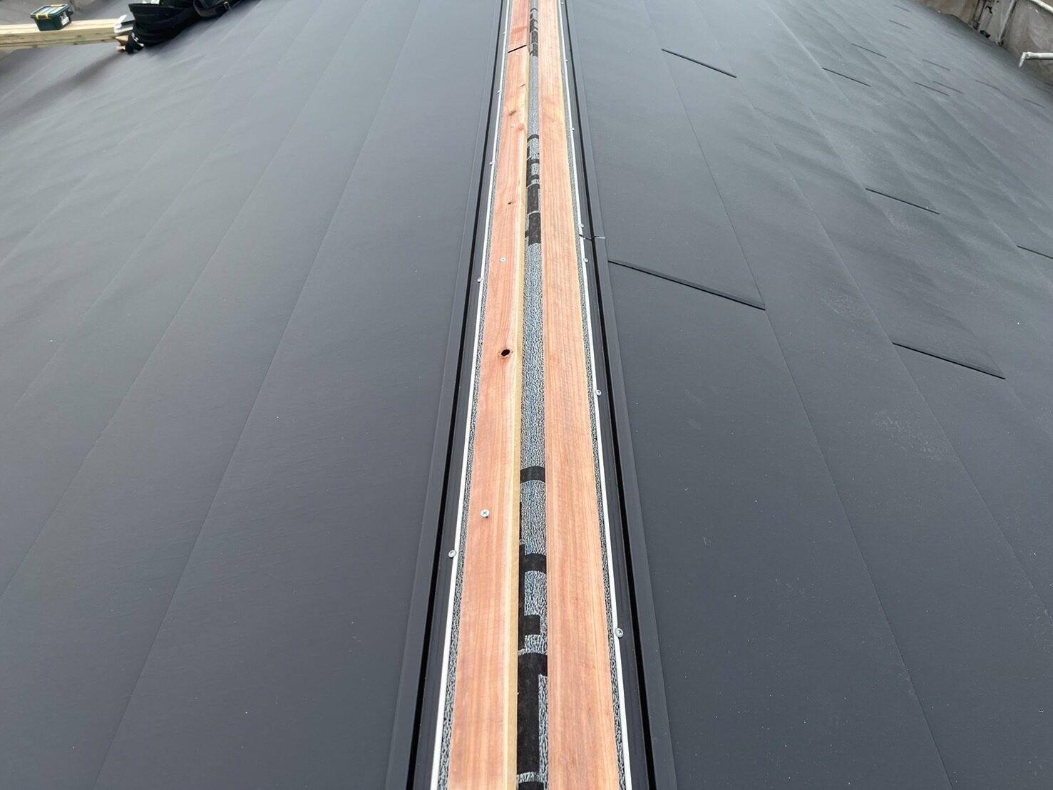 今回はセメント瓦から金属屋根の中でも最も遮熱鋼板と厚みのある断熱材で断熱最上位モデル、ニチハ横暖ルーフaプレミアムSに葺き替えました。